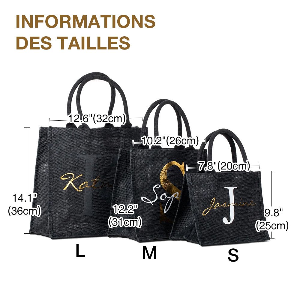 Le design élégant et chic de ce sac fourre-tout comporte un nom personnalisé avec une initiale, ce qui en fait un cadeau parfait pour les demoiselles d'honneur, les fêtes de mariage, les enterrements de vie de jeune fille et les amateurs de voyage. La couleur noire et la police élégante ajoutent une touche de sophistication à n'importe quelle tenue.