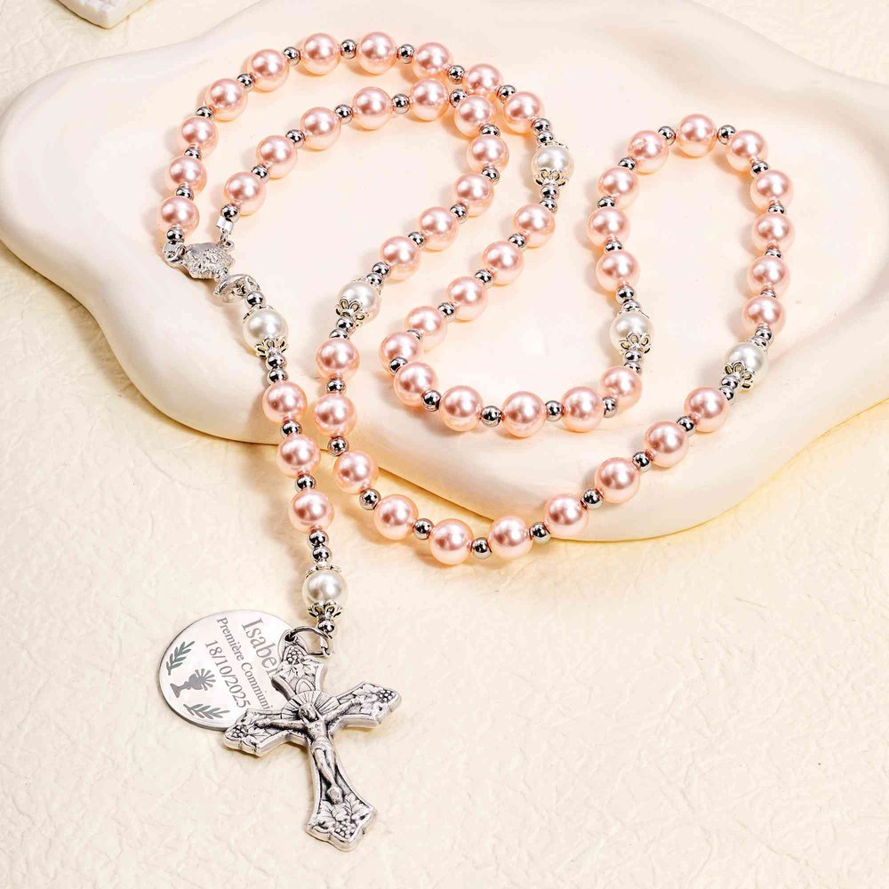 La combinaison du chapelet et du pendentif en forme de croix conserve la solennité de la religion tout en ajoutant un charme à la mode. Il est disponible en deux options : bleu et rose, et peut être personnalisé non seulement avec le nom mais aussi avec la date. Chaque chapelet contient une croix et un pendentif en forme de calice, ce qui en fait un souvenir significatif pour commémorer ces moments importants sur le chemin de la foi. L'apparence et la fabrication exquises sont un rappel quotidien de la grâce, de l'amour et de la miséricorde de Dieu dans les moments difficiles.