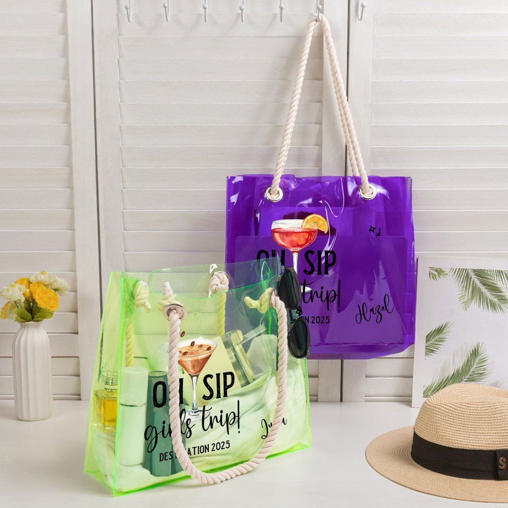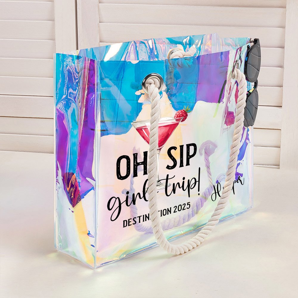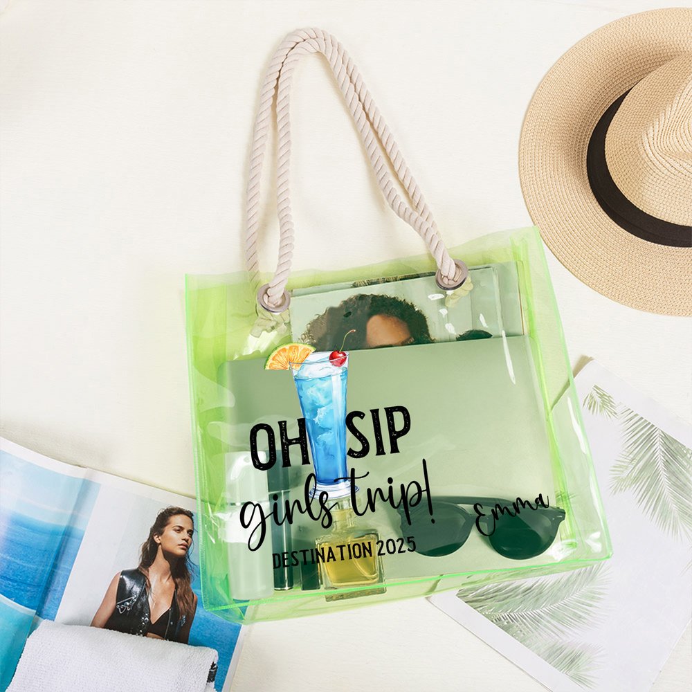 Centrée sur le thème "Oh Sip Girls Trip" comme élément central du design, cette collection présente un style inspiré des vacances avec une variété d'options de couleurs. Le design allie harmonieusement la vitalité et le confort d'une escapade entre filles, créant un look global élégant mais distinctif. Le sac d'accessoires n'est pas seulement un outil de rangement, mais un symbole personnalisé qui met en valeur les liens entre sœurs et les vibrations des vacances, rehaussant sans effort votre tenue de voyage.