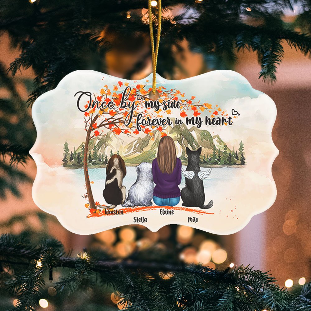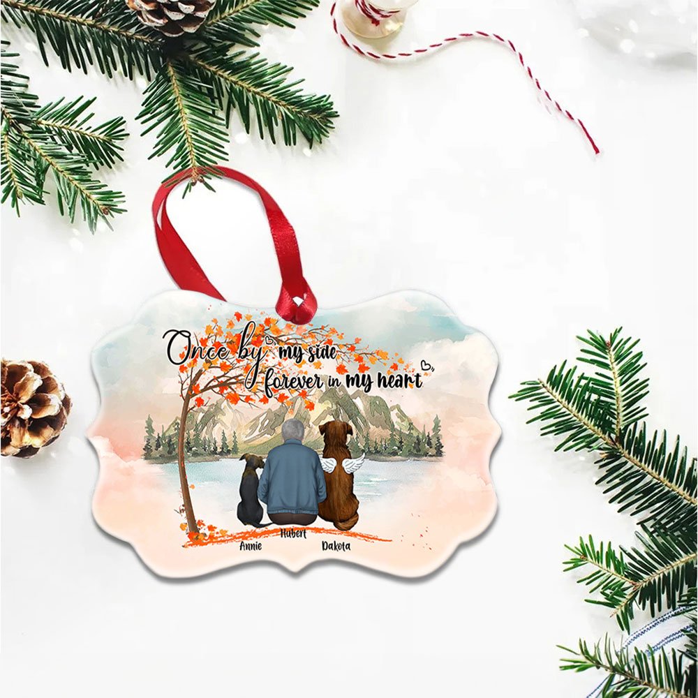 Le message "Once By My Side Forever In My Heart" est magnifiquement imprimé sur l'ornement, rappelant les bons moments partagés entre le chien et son maître.