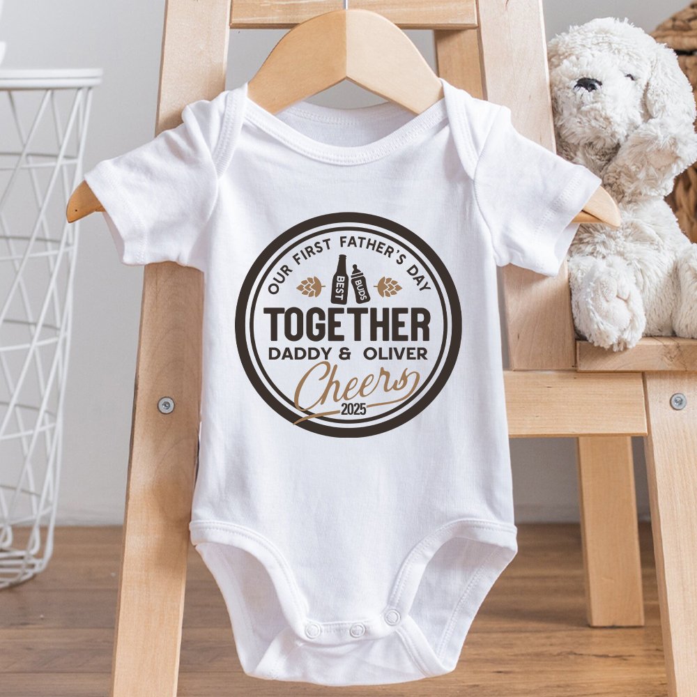 Ce set unique comprend un biberon et une bouteille de bière qui peuvent être personnalisés avec votre nom et celui de votre fille ou de votre fils. Les mots chaleureux "Notre première fête des pères ensemble" symbolisent la relation inséparable entre le père et le bébé, témoignant des moments chaleureux entre parents et enfants.