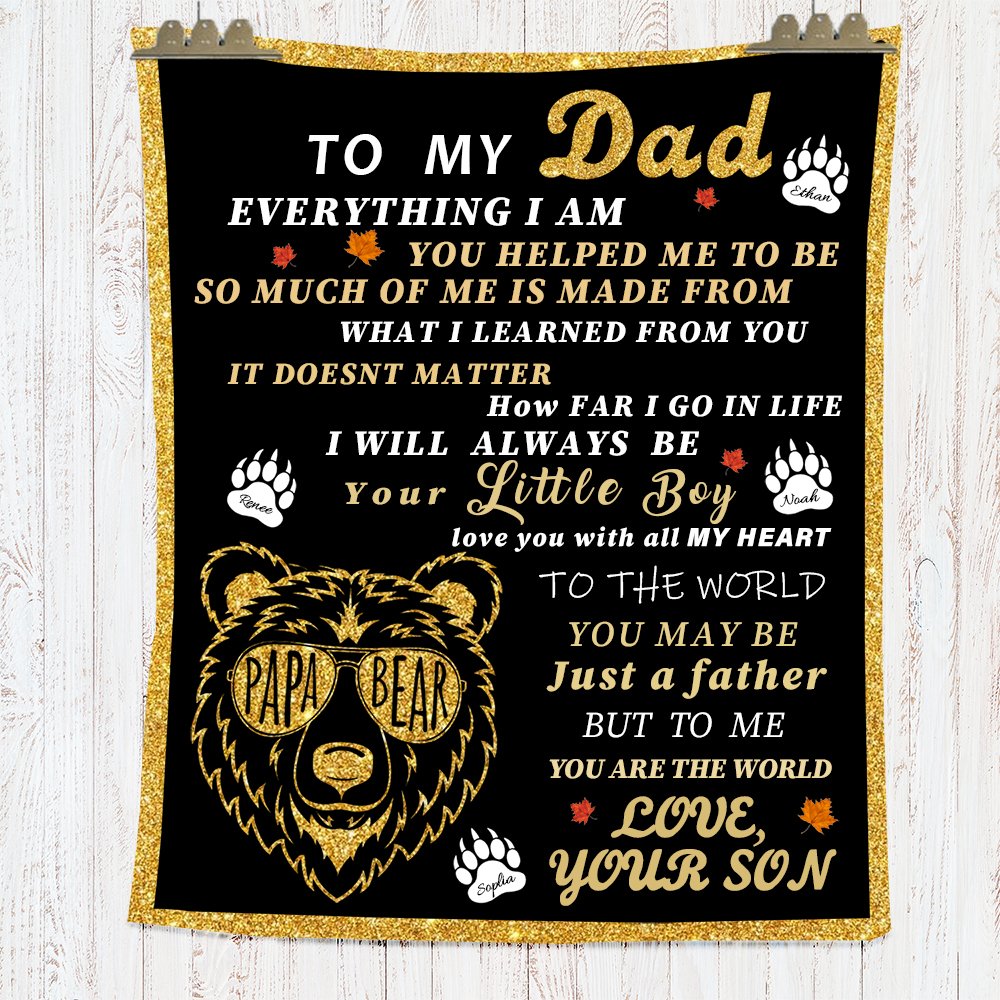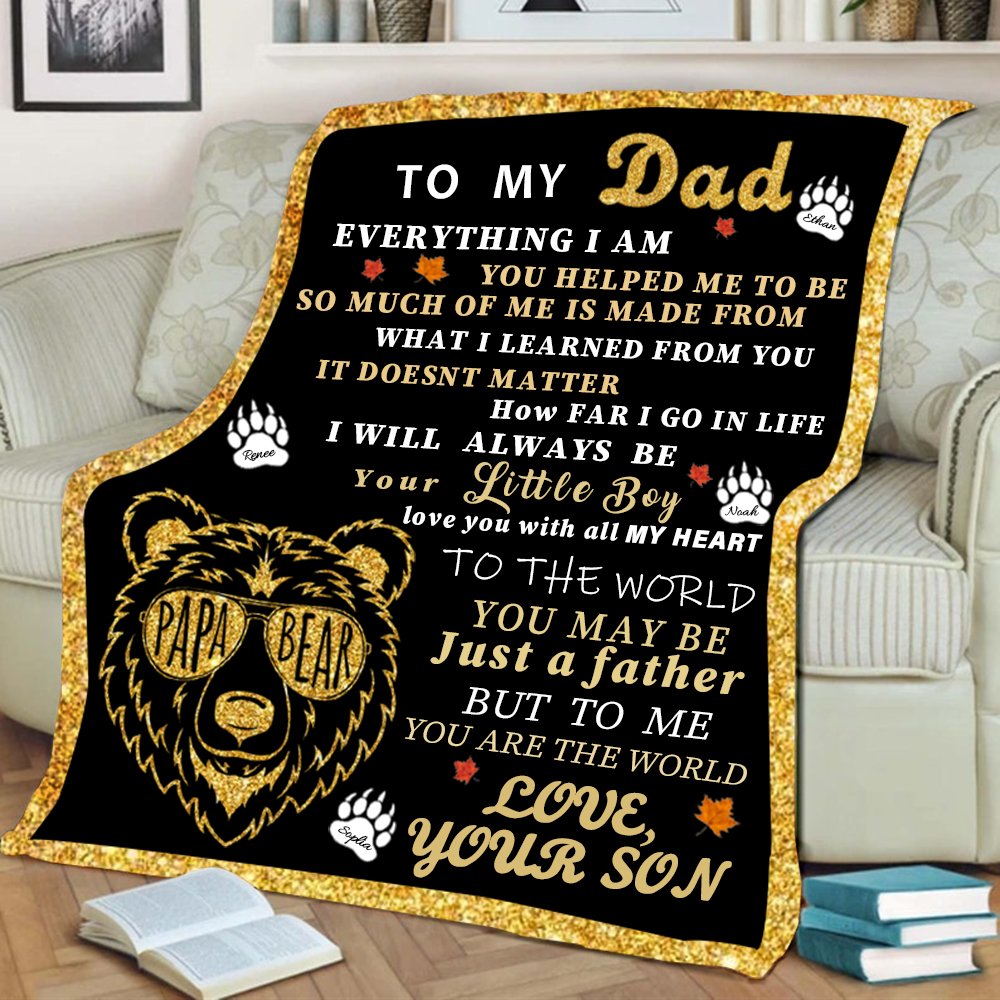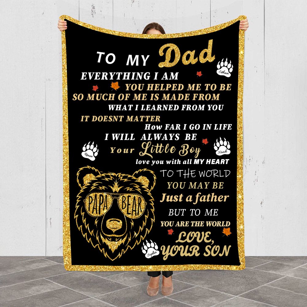 Cette couverture personnalisée "To My Dad" est un cadeau touchant qui montre à votre père à quel point il compte pour vous. Personnalisez-la avec votre nom pour créer un souvenir vraiment personnalisé qui lui fera chaud au cœur.