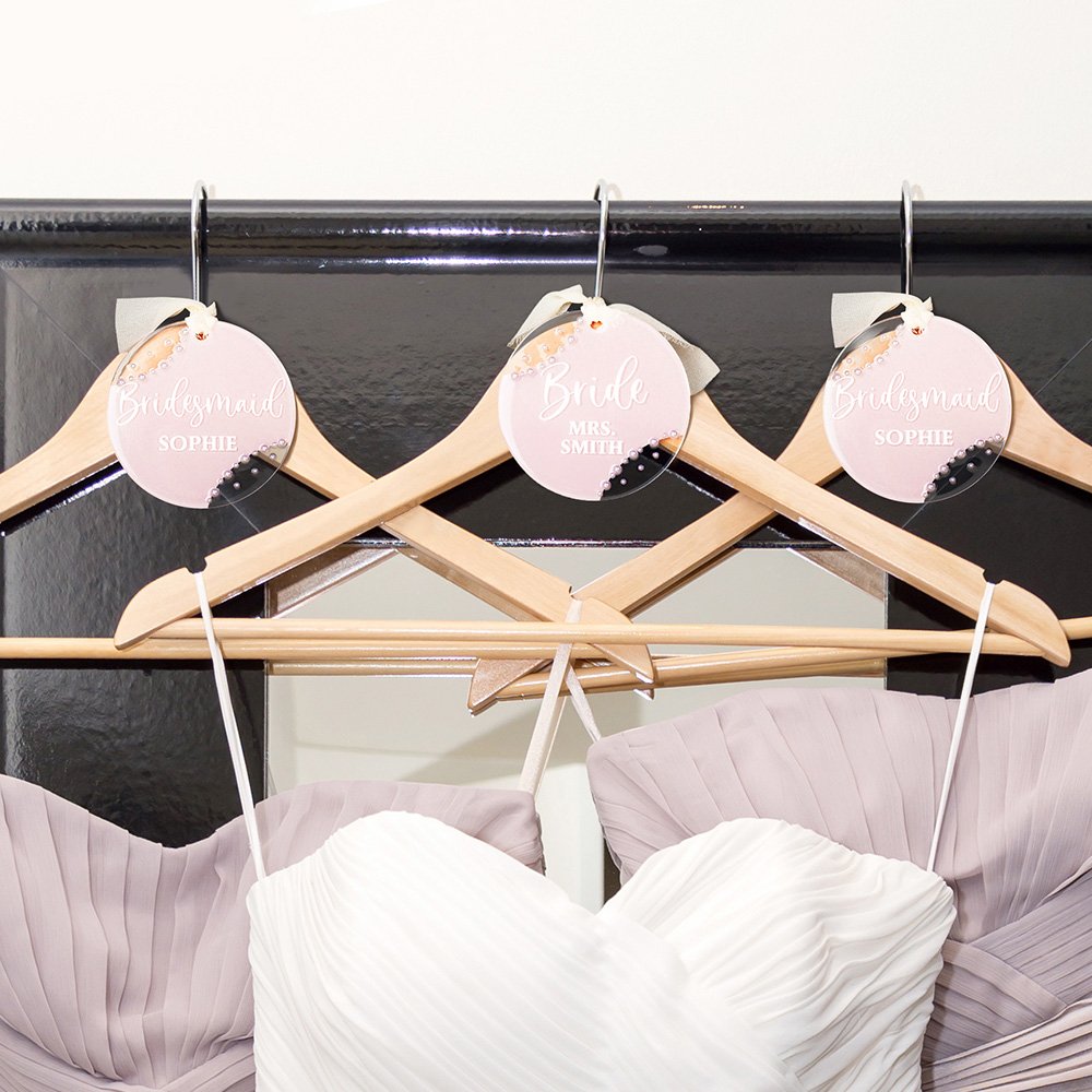 Chaque étiquette de cintre est accompagnée d'un délicat ruban ivoire, qui vous permet de l'attacher élégamment à un cintre ou à un sac cadeau. Cette touche supplémentaire rehausse la présentation générale, ce qui en fait un accessoire idéal pour les tenues de mariage ou un ajout attentionné aux cadeaux des demoiselles d'honneur, mettant en évidence votre souci du détail.