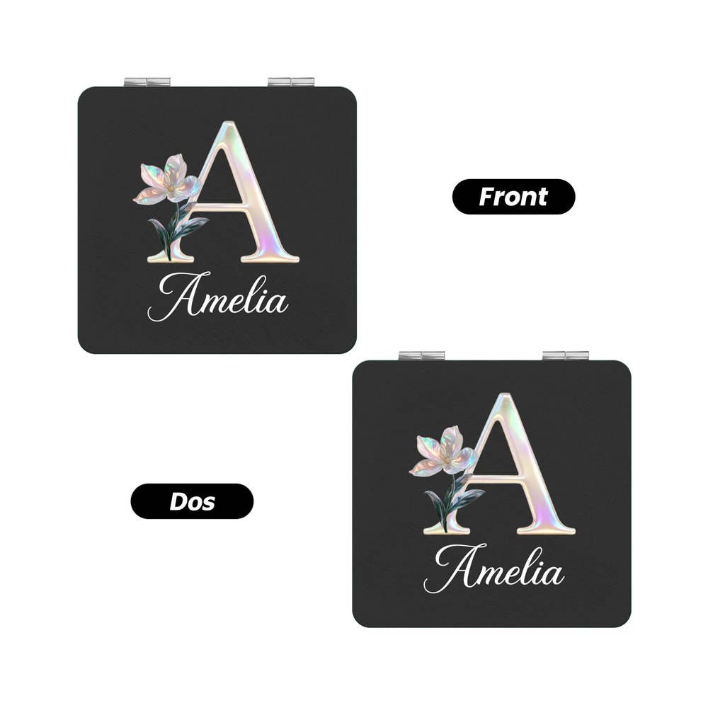Ce miroir de maquillage de poche exquis est une fusion harmonieuse de fleurs de naissance et d'effets nacrés chatoyants, offrant une touche personnalisée avec des lettres et des noms personnalisables. Disponible en forme de cœur, de carré ou de rond, il répond aux goûts les plus divers, ce qui en fait un accessoire vraiment unique.