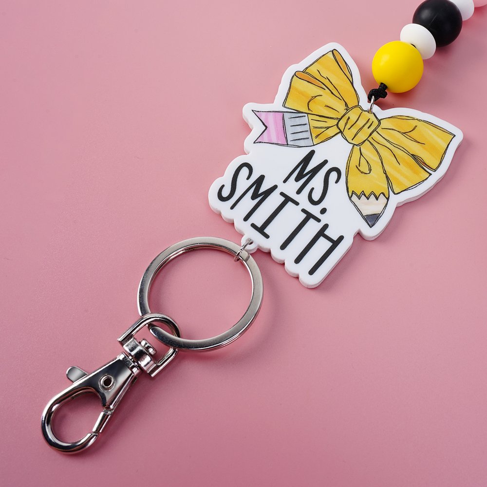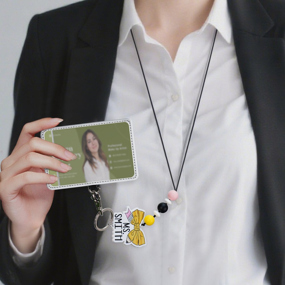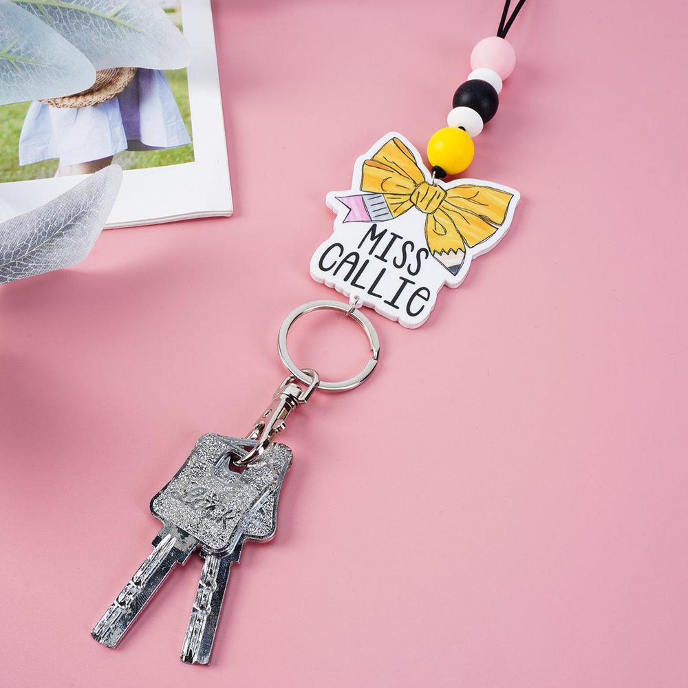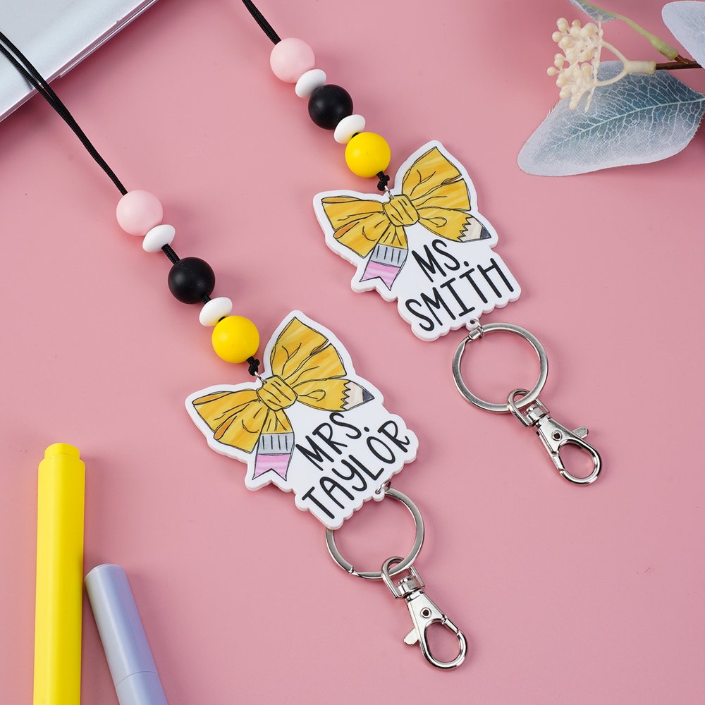 La forme du cordon est un nœud de crayon, et le porte-badge est décoré de motifs de dessins animés ludiques tels que des pommes rouge vif, des livres, des petits trombones et des nœuds délicats. Vous pouvez imprimer le texte souhaité sur le cordon et le porte-badge. Personnalisez-les avec des polices de caractères ludiques assorties et le nom de l'enseignant, transformant ainsi un accessoire fonctionnel en une expression de gratitude sincère, reflétant leur esprit vif et bienveillant.