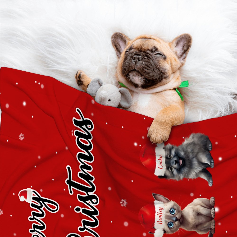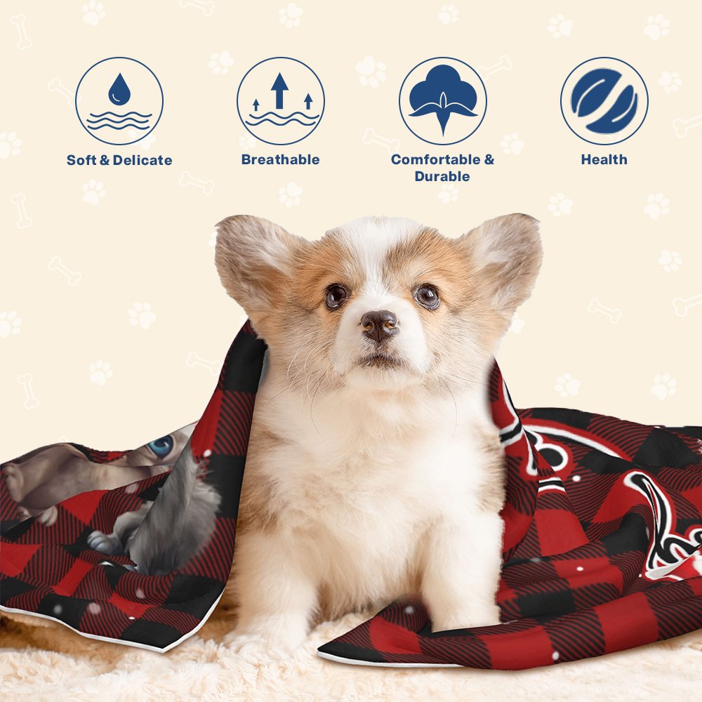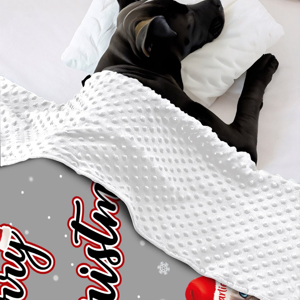 Cette couverture pour animaux de compagnie évoque l'esprit enchanteur des fêtes de fin d'année. Les couleurs vives, associées à l'adorable chapeau de Noël et aux flocons de neige, transforment instantanément n'importe quel espace de couchage en un pays des merveilles. Votre animal aura l'impression de participer aux festivités, et vous sourirez à coup sûr à chaque fois que vous le verrez emmitouflé dans sa couverture personnalisée.