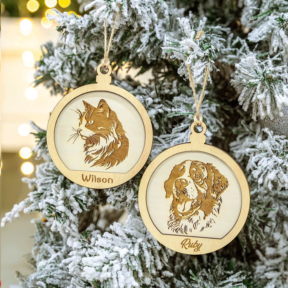 Cet ornement se distingue par son design unique. Chaque ornement présente un motif circulaire avec des images vivantes de chats et de chiens respectivement, qui reflètent parfaitement l'amour que les amoureux des animaux de compagnie portent à leurs enfants à fourrure. L'ornement peut également être personnalisé avec le nom de l'animal, ce qui fait de chaque ornement une œuvre d'art unique.
