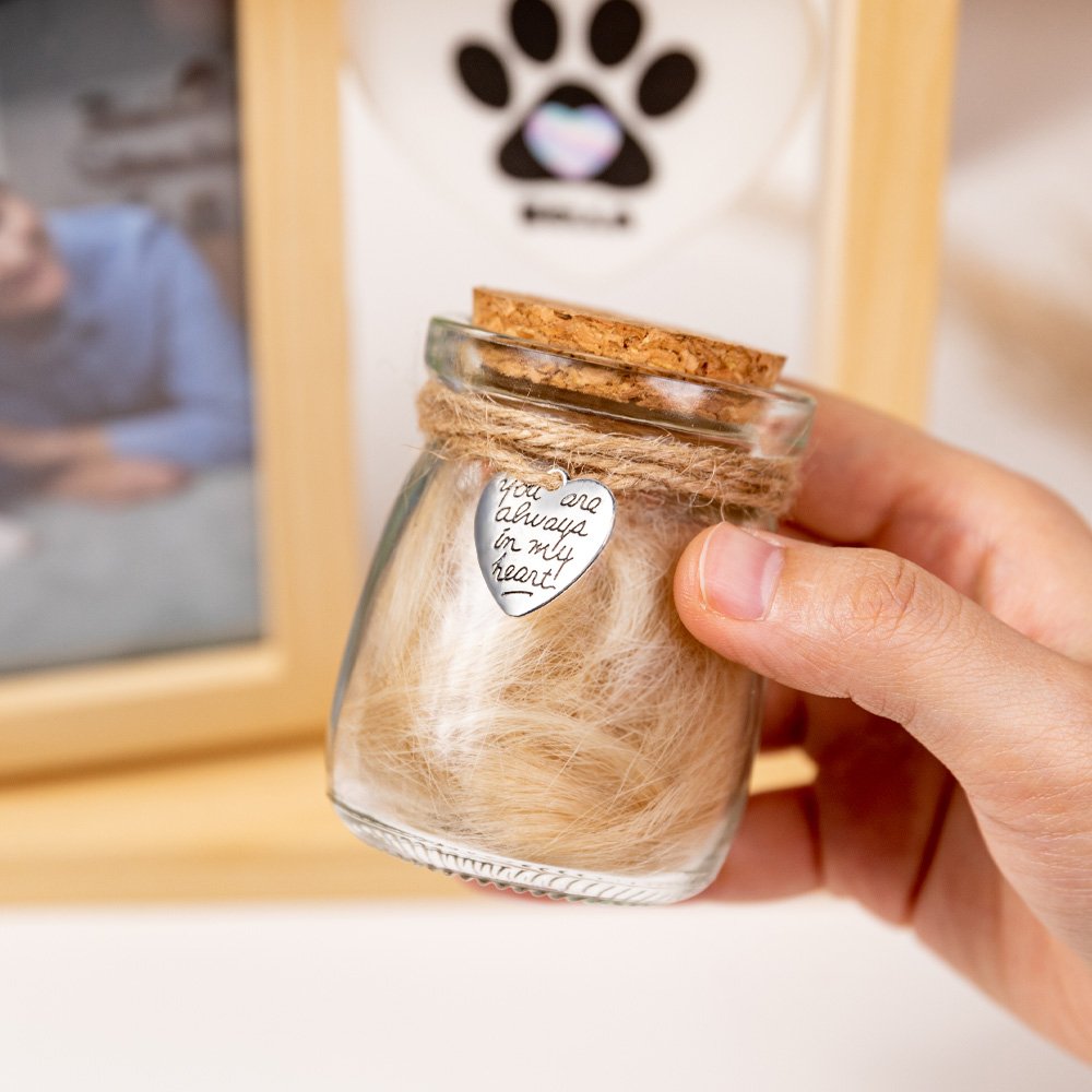 | Mesure: | Cadre en bois - 23 cm × 21 cm × 4 cm Ornement en forme de coeur - 7,5 cm × 6,5 cm Plaque en forme de cœur sur le bocal - 2 cm × 2,1 cm Hauteur du bocal - 5,3 cm Photo - 15,24 cm × 10,16 cm |