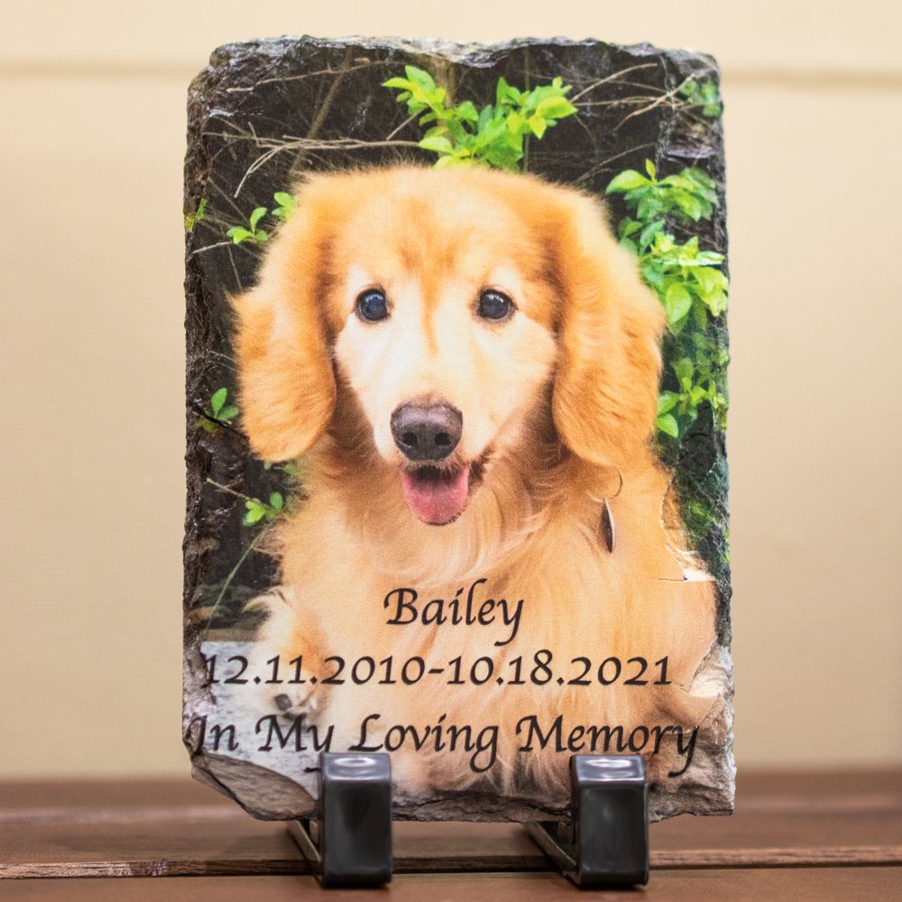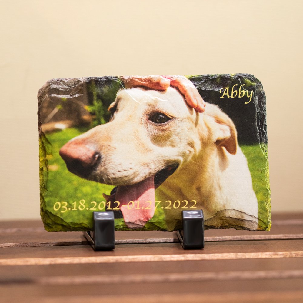 Cette belle ardoise naturelle affichera vos photos préférées d'animaux de compagnie d'une manière impressionnante. Vos photos seront pressées à chaud de façon permanente sur la surface lisse de l'ardoise et ne s'écailleront, ne se décoloreront ou ne s'écailleront jamais.