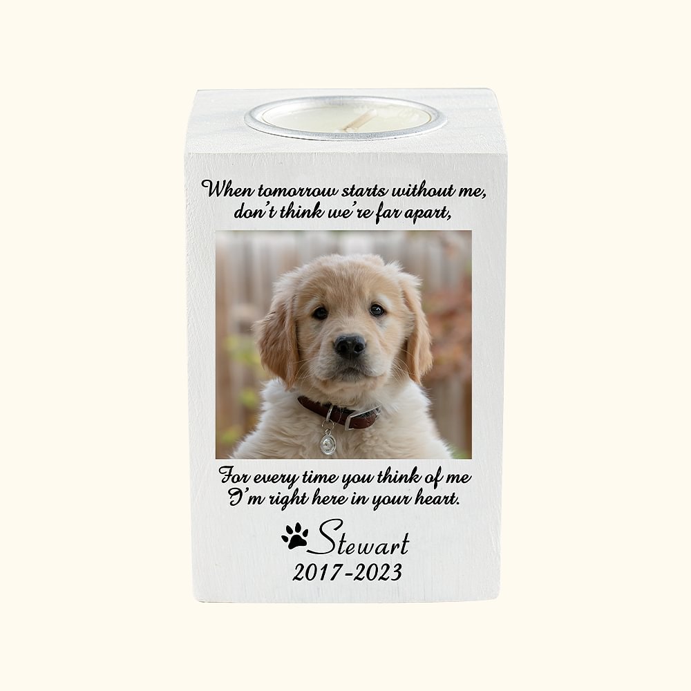 Notre bougeoir est une façon sincère d'honorer et de se souvenir de votre animal de compagnie bien-aimé. Ce cadeau commémoratif unique vous permet de le personnaliser avec votre photo préférée de votre ami à fourrure. Chaque fois que vous allumerez la bougie, sa vie et son esprit brilleront, créant une atmosphère réconfortante remplie de souvenirs précieux.
