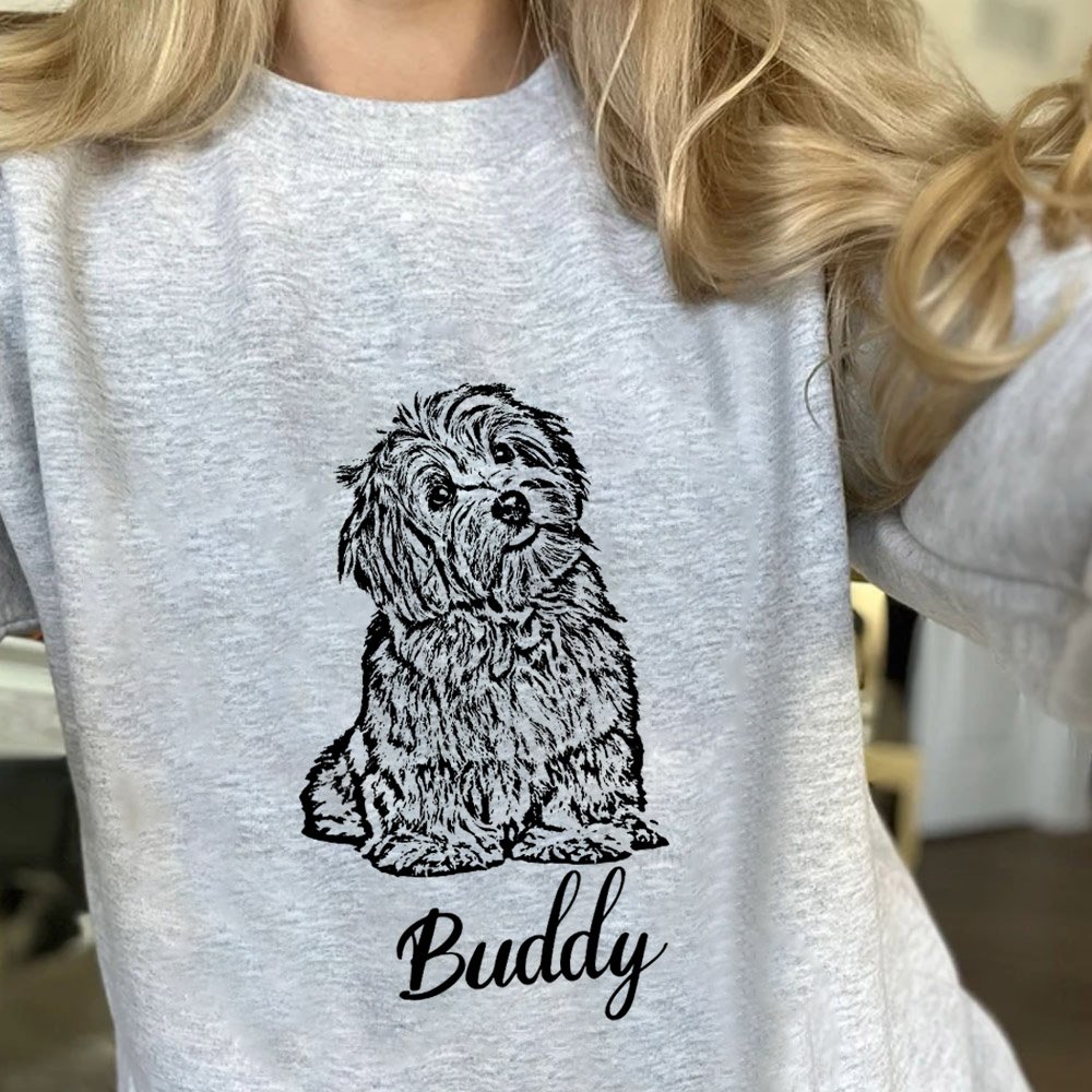 Plongez dans l'art du croquis avec ce portrait d'animal de compagnie. Nous avons méticuleusement représenté l'image de votre animal de compagnie sur le devant du vêtement, en capturant ses caractéristiques uniques et sa personnalité. Des coups de pinceau complexes transforment vos photos préférées en chefs-d'œuvre à porter.