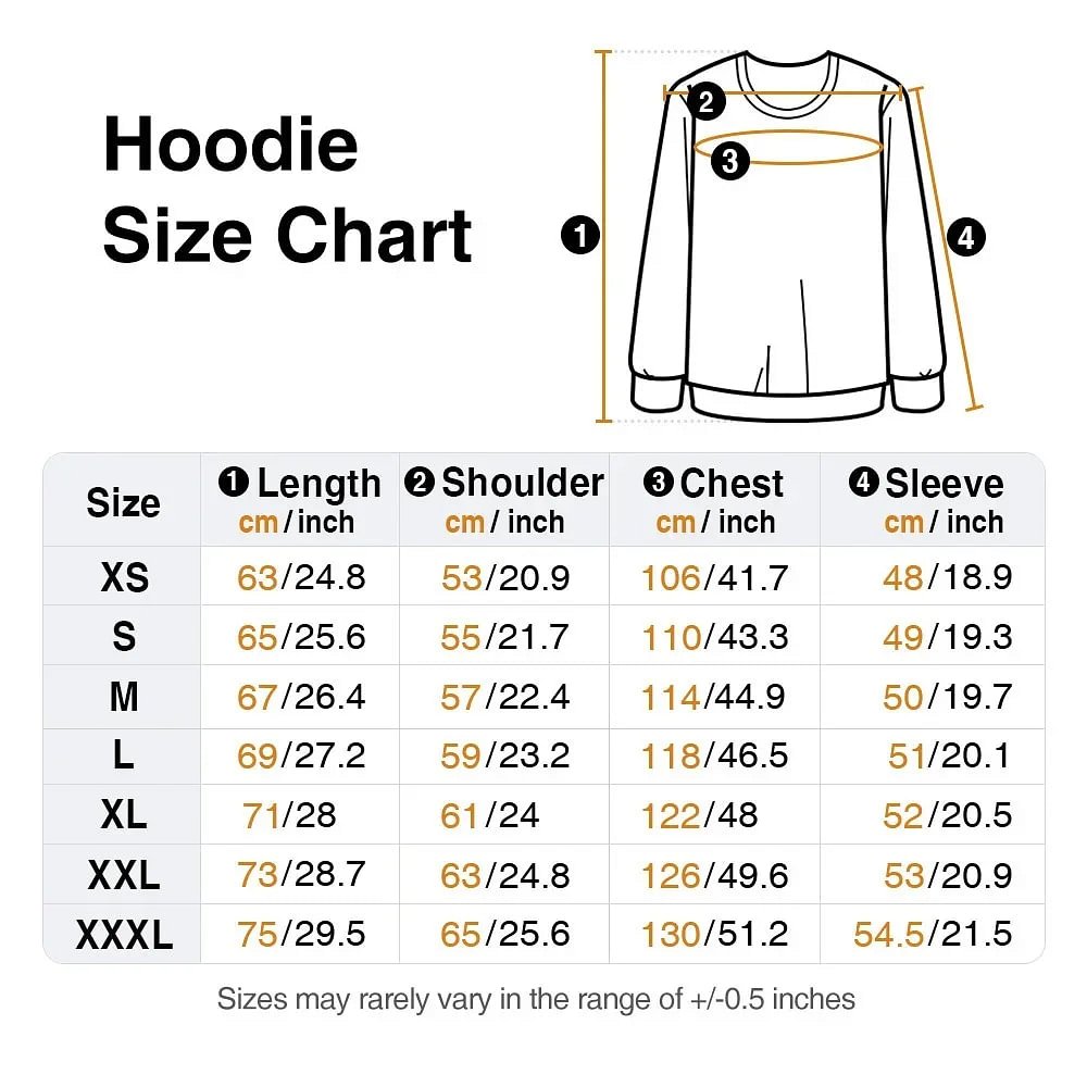 Mesure: T-shirt - XXS, XS, S, M, L, XL, 2XL, 3XL, 4XL, 5XL Sweat-shirt - XXS, XS, S, M, L, XL, 2XL, 3XL Sweat à capuche - XXS, XS, S, M, L, XL, 2XL, 3XL