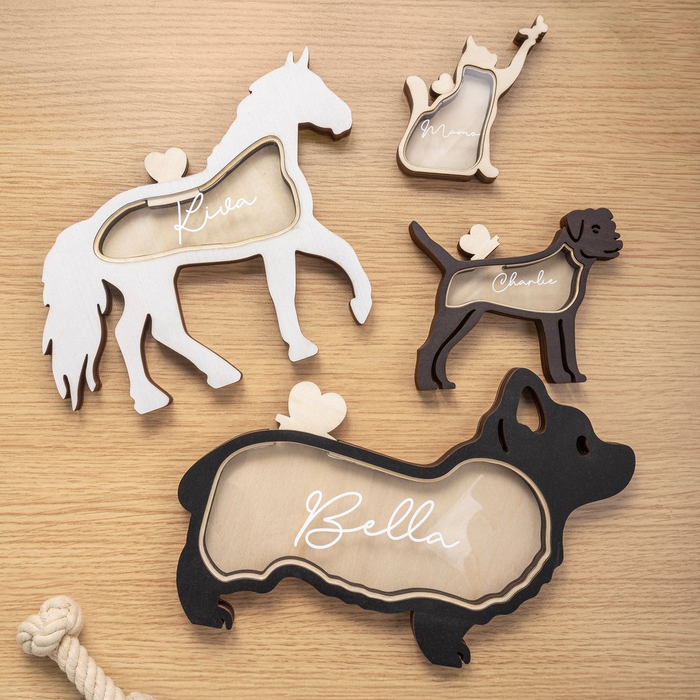 Avec des formes animales et des noms personnalisés comme éléments principaux, ces souvenirs sont spécialement conçus pour les animaux de compagnie, offrant une expérience simple mais réconfortante. La personnalisation est possible, ce qui vous permet d'incorporer l'image et le nom de votre animal dans le design. L'effet global est doux et significatif, car il véhicule de précieux souvenirs des moments passés avec votre animal de compagnie.