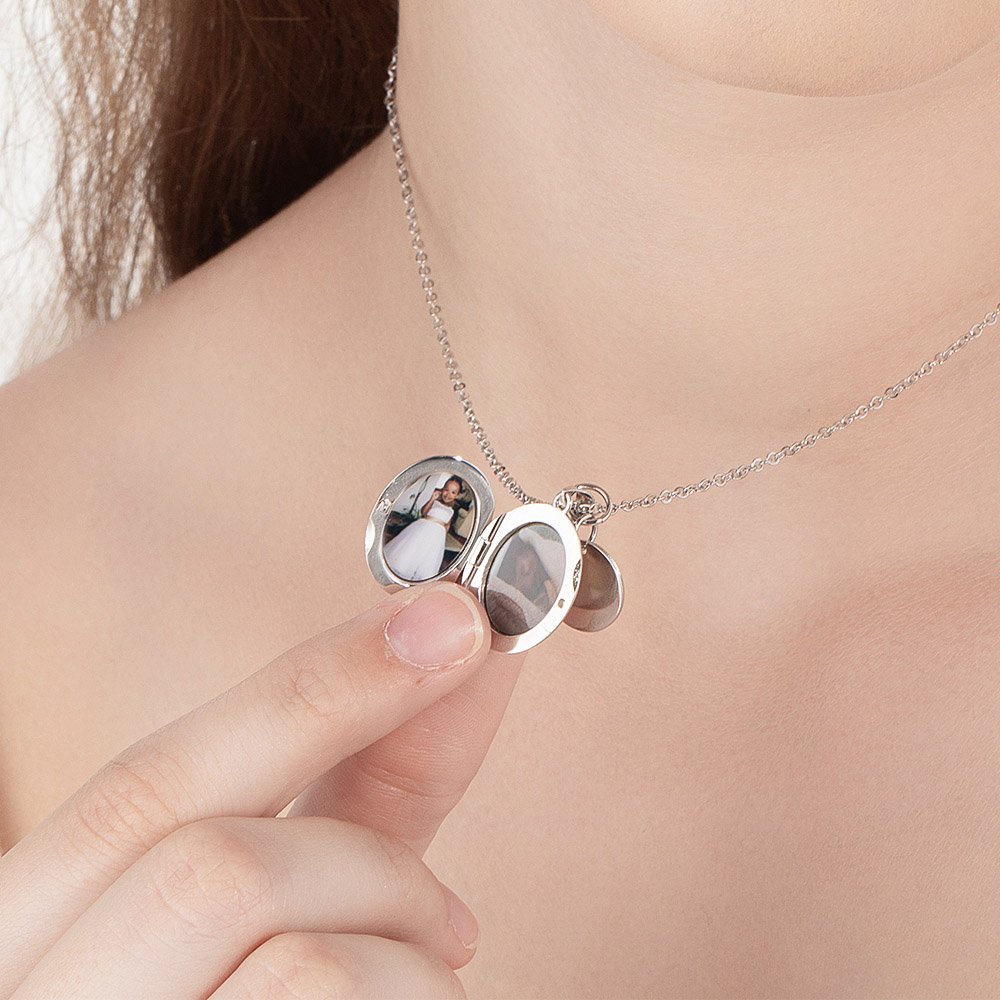 Ce collier comporte un élégant médaillon ovale fabriqué dans un matériau de haute qualité, garantissant sa durabilité et sa longévité. Le médaillon s'ouvre pour révéler deux compartiments spacieux dans lesquels vous pouvez insérer vos deux photos préférées, telles que des photos de vos proches, de vos animaux de compagnie ou de moments mémorables, ou une photo sur le côté gauche et un texte sur le côté droit. Cela vous permet de garder vos souvenirs les plus chers près de votre cœur à tout moment.