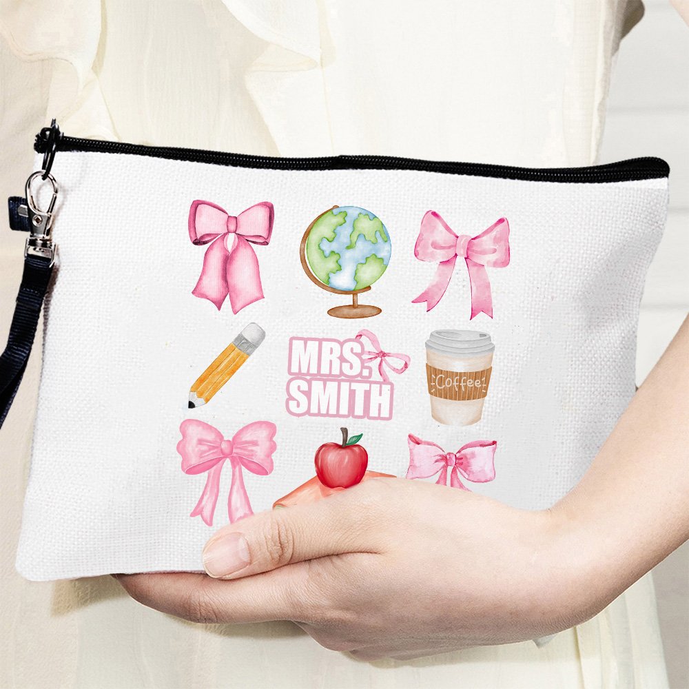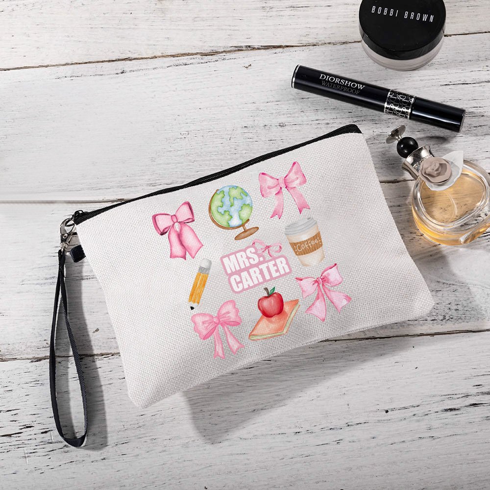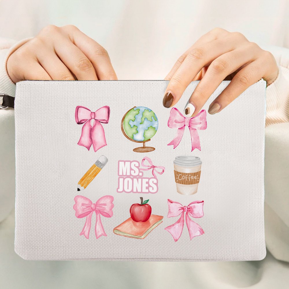 Cette trousse de maquillage présente des motifs classiques tels qu'un nœud rose, un crayon, un café, un globe et une pomme. Ces éléments représentent magnifiquement le rôle nourricier et éducatif des enseignants, ce qui en fait un cadeau idéal pour exprimer sa gratitude.