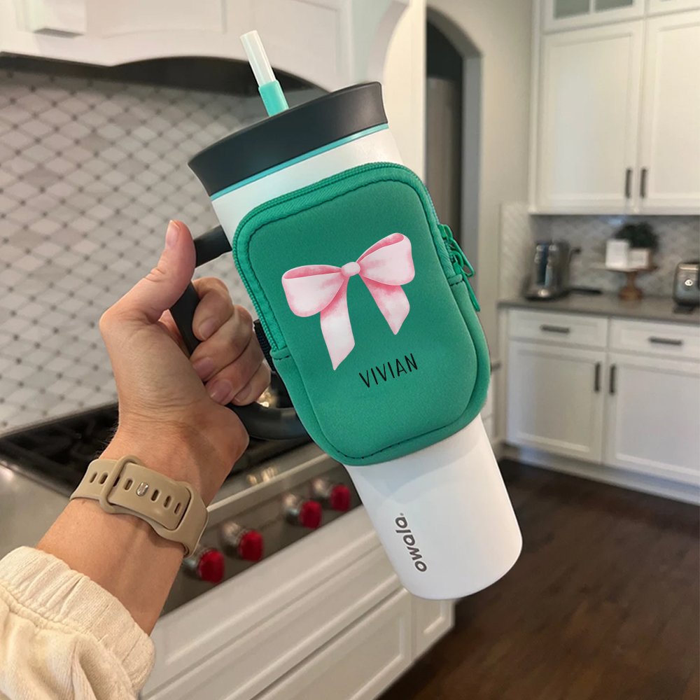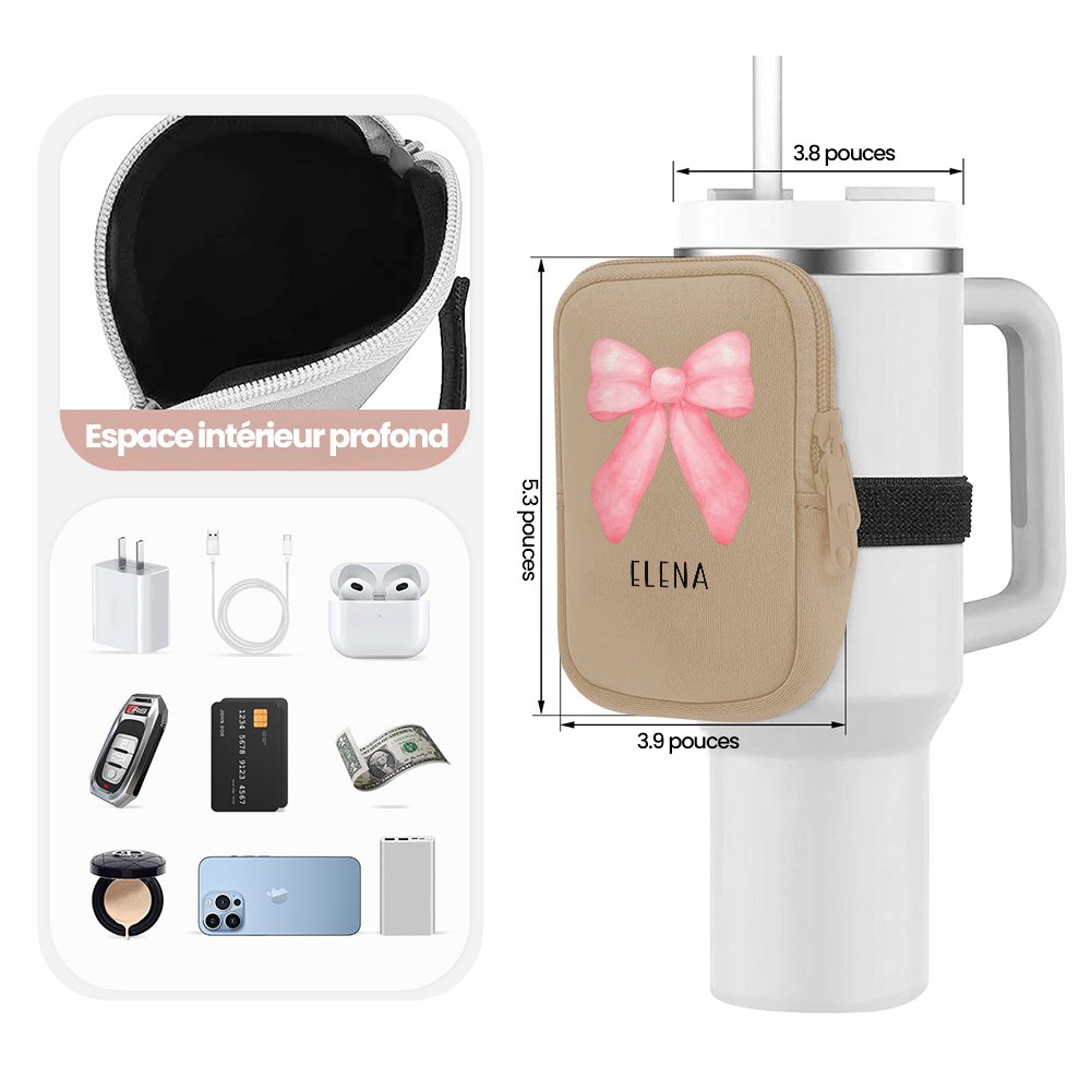 Notre sac pour bouteille d'eau se distingue par le fait qu'il peut être personnalisé avec votre nom, qui sera combiné avec un style de nœud élégant, ce qui en fait un accessoire unique.