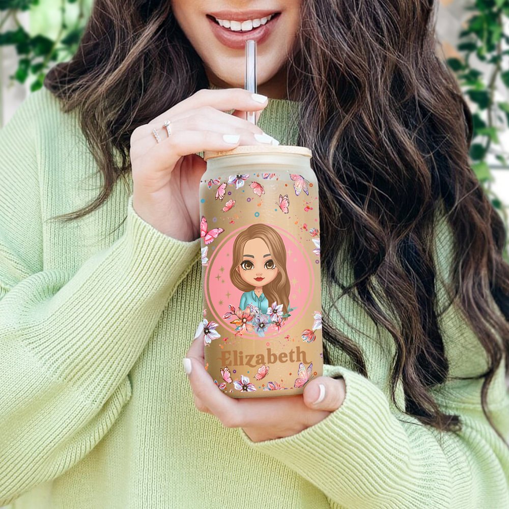 Notre gobelet en verre givré de 20oz est basé sur le rose, ajoutant des éléments de fleurs et de papillons, qui sont romantiques et élégants, créant une expérience visuelle charmante. Vous pouvez personnaliser l'image et le nom de votre personnage pour en faire un souvenir unique.
