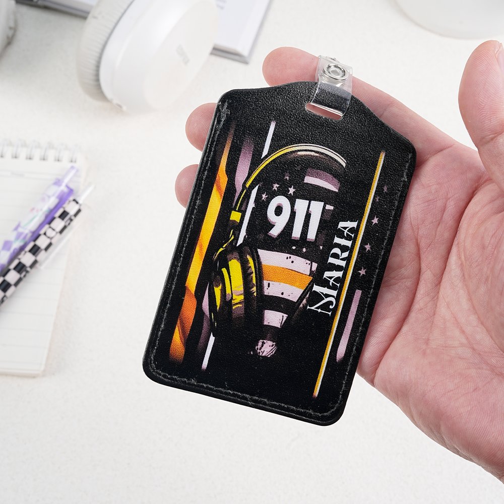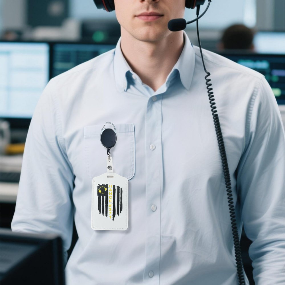 La ligne dorée est l'élément principal du design, symbolisant le rôle essentiel des répartiteurs d'urgence dans la coordination de la communication entre les personnes qui appellent le 911 et la police, les pompiers et les ambulanciers. Divers graphiques sur le thème des répartiteurs complètent parfaitement l'image professionnelle du répartiteur, rendant le porteur instantanément reconnaissable dans l'exercice de ses fonctions. Le texte personnalisable renforce encore le caractère distinctif du porte-badge.