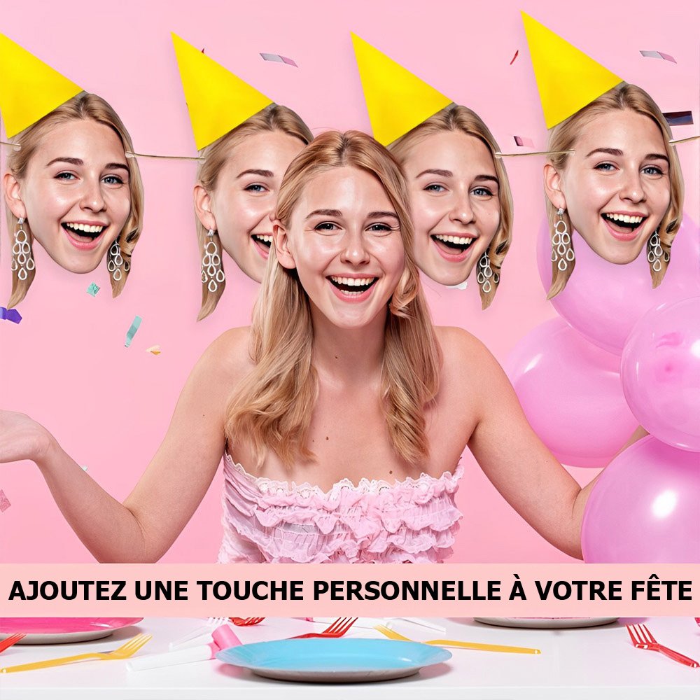 Faites ressortir votre fête en ajoutant le visage de chacun à la décoration ! Cette bannière vous permet de présenter des photos personnalisées de l'invité d'honneur ou d'autres participants à la fête, ce qui en fait une décoration hilarante et mémorable. Elle apportera à coup sûr de la joie et des rires à n'importe quel rassemblement.