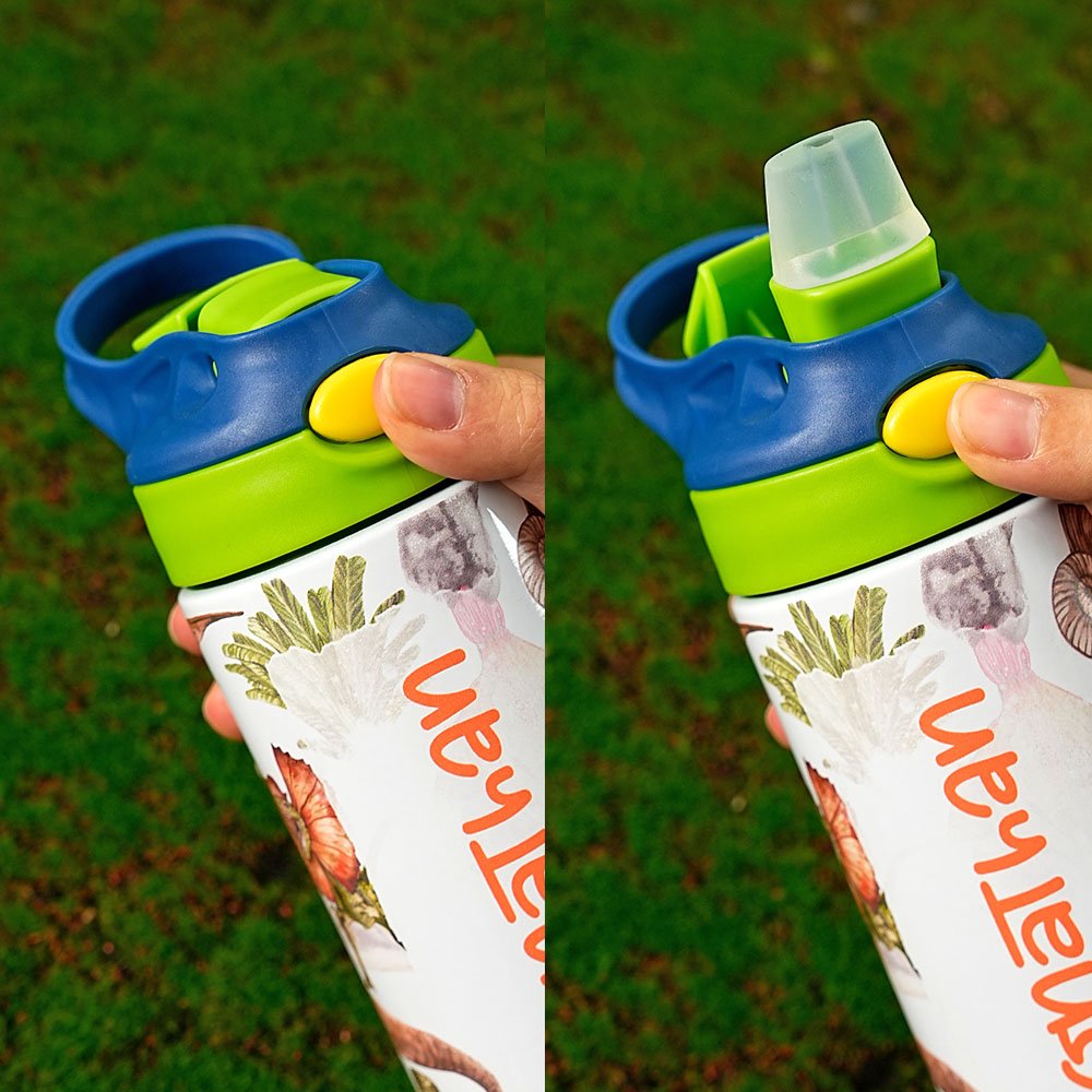 Fabriqué en acier inoxydable de haute qualité et en matériaux de qualité alimentaire, il est sûr et sain à boire. Robuste et durable, l'embouchure du gobelet est conçue avec une paille en silicone, qui peut être éjectée en appuyant sur un bouton. L'embouchure du gobelet est hermétique et étanche, et le fond épais rend le gobelet d'eau plus résistant aux chutes et à l'usure. En outre, le gobelet est léger et sa taille de 12 onces le rend facile à tenir pour les petites mains !