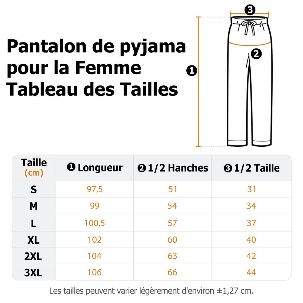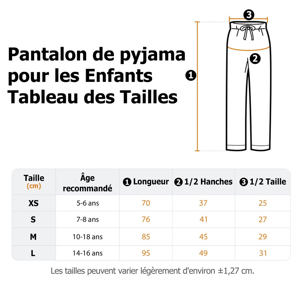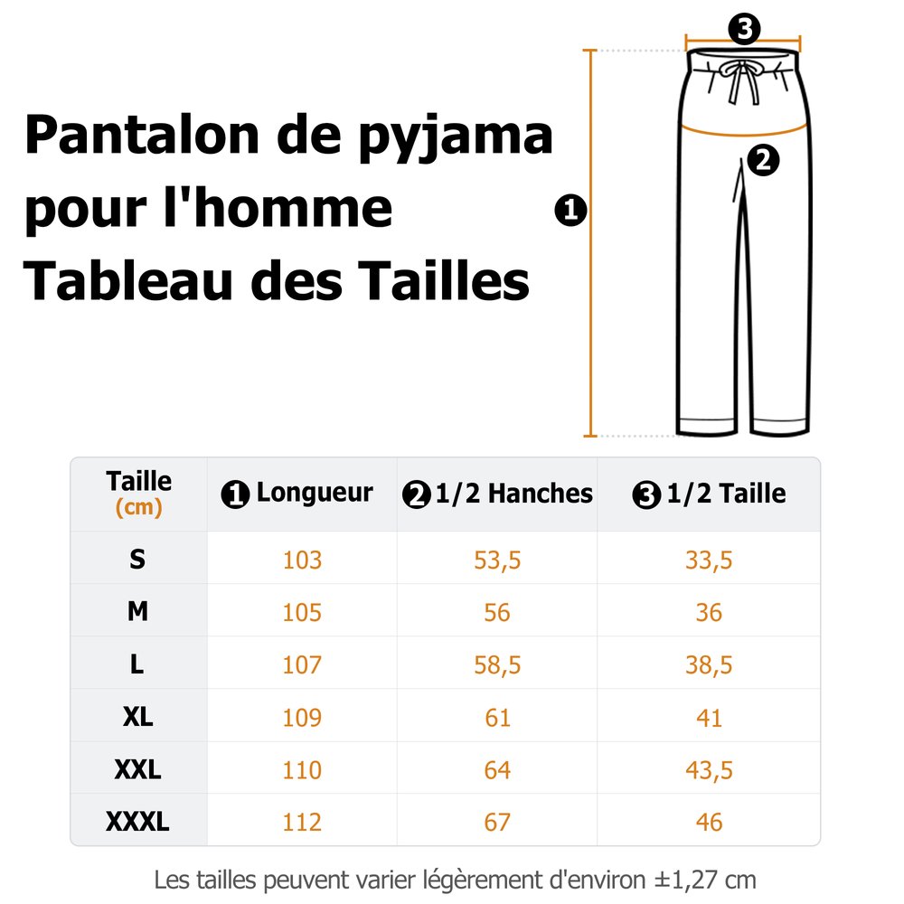| Mesure: | Pantalon de pyjama pour enfants - XS, S, M, L Pantalon de pyjama pour femmes - S, M, L, XL, 2XL, 3XL Pantalon de pyjama pour hommes - S, M, L, XL, 2XL, 3XL |
