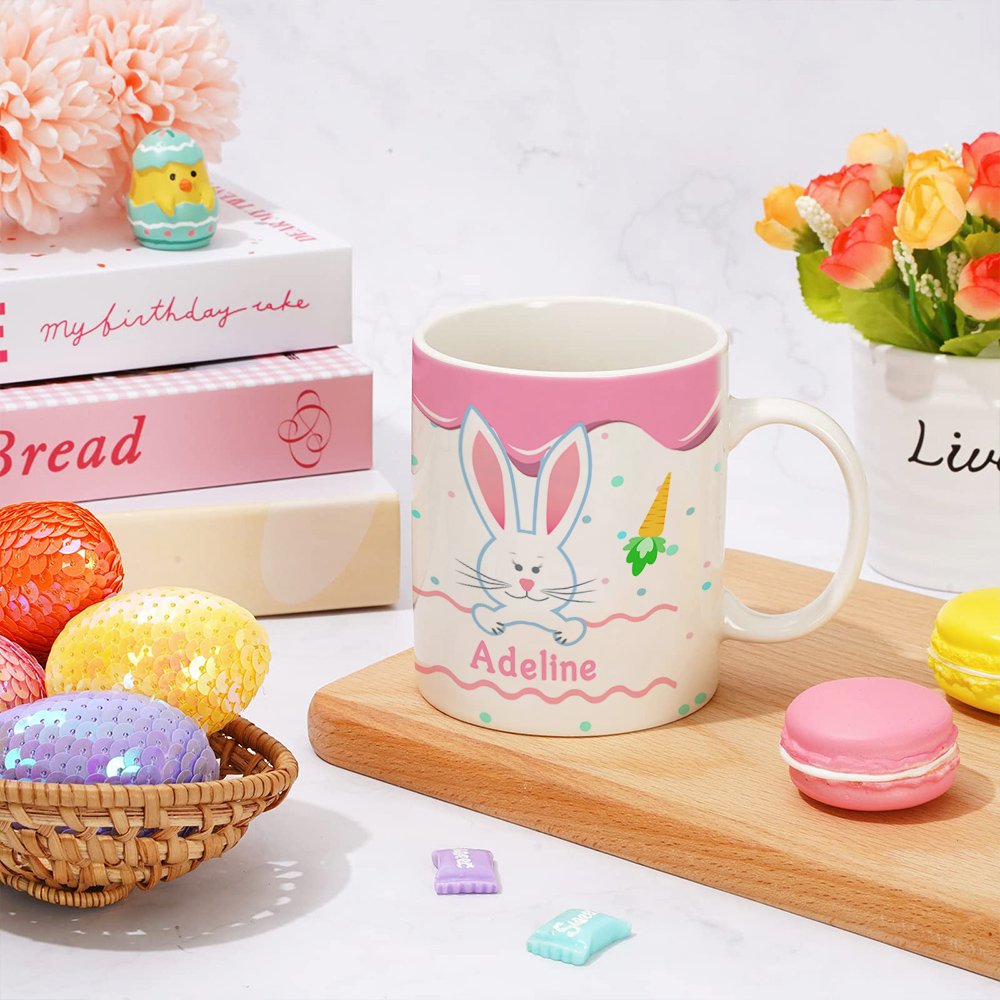 Rendez cette tasse vraiment unique en y ajoutant un nom pour vos proches. Imaginez leur excitation lorsqu'ils verront leur nom joliment imprimé sur cet adorable mug en forme de lapin de Pâques.