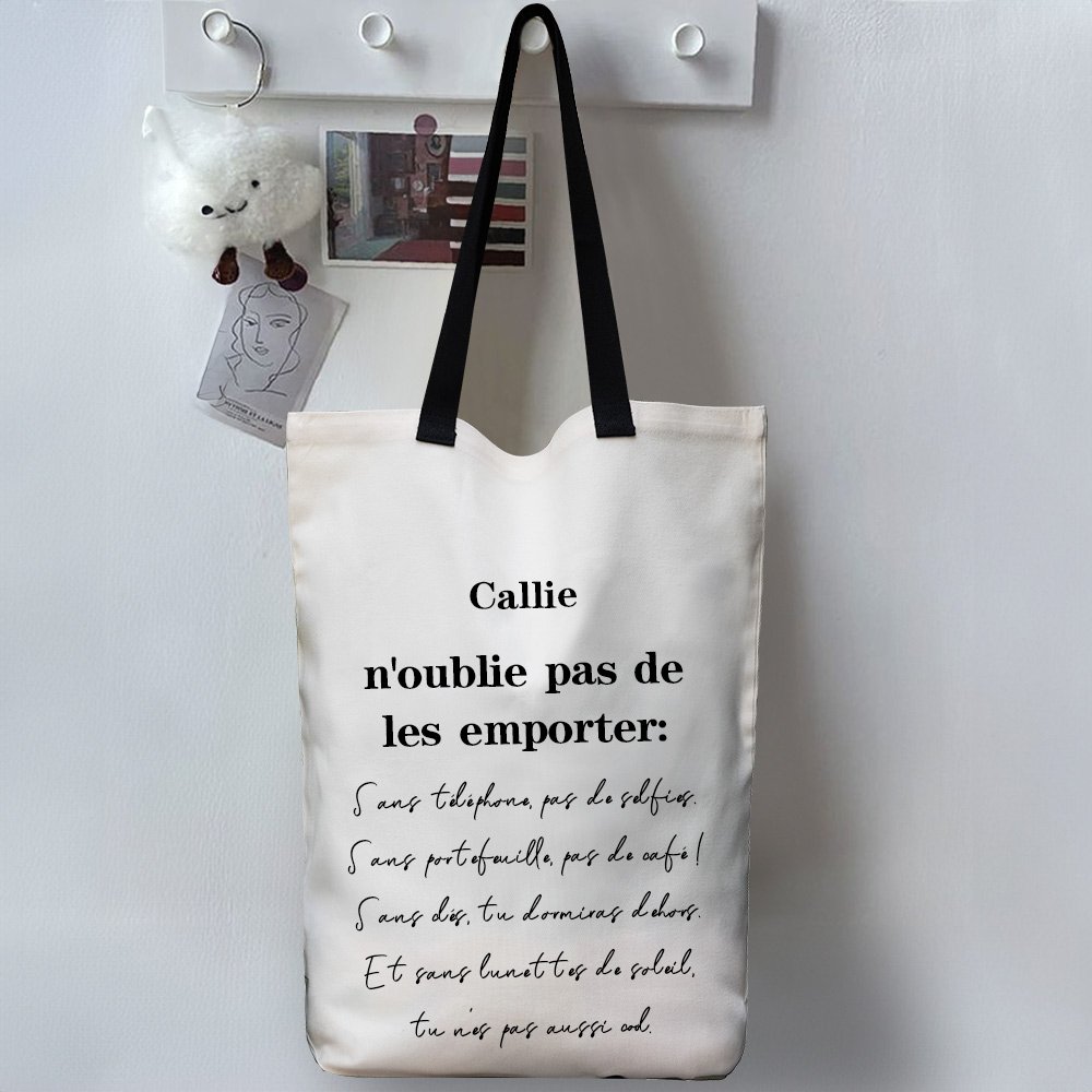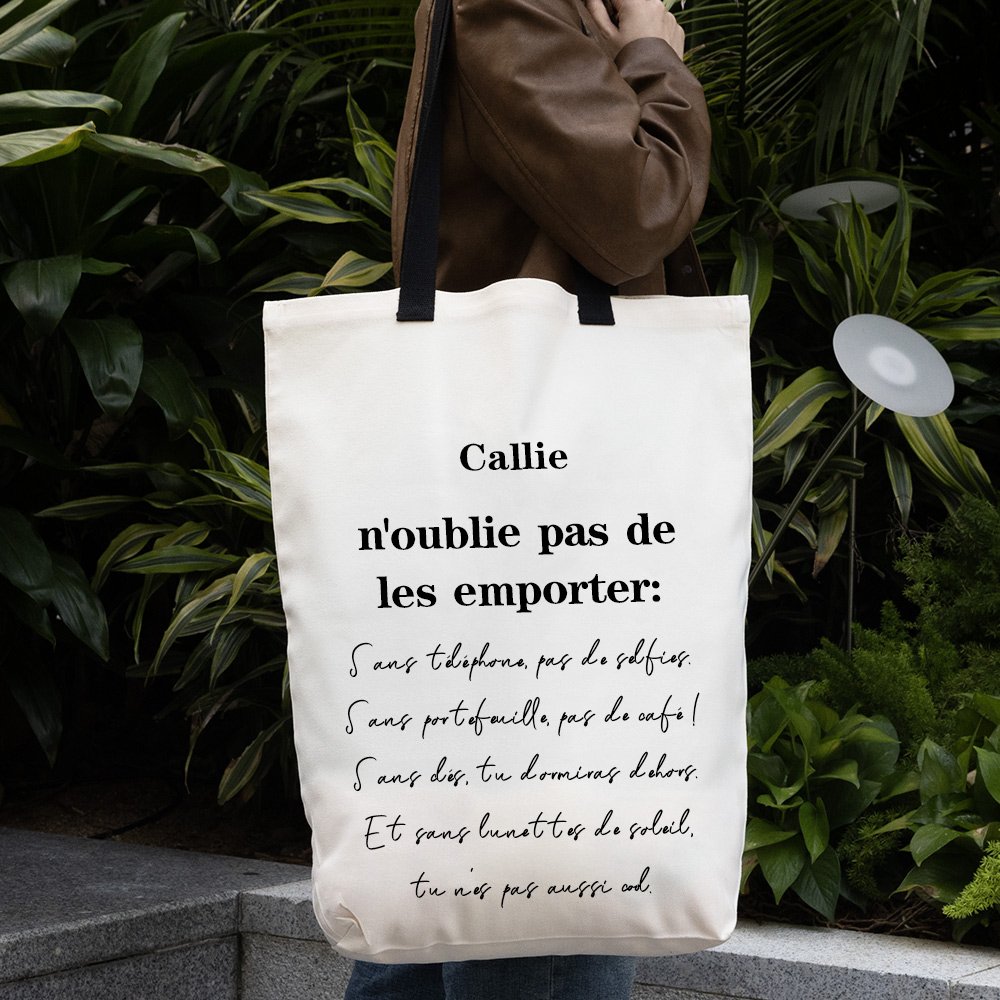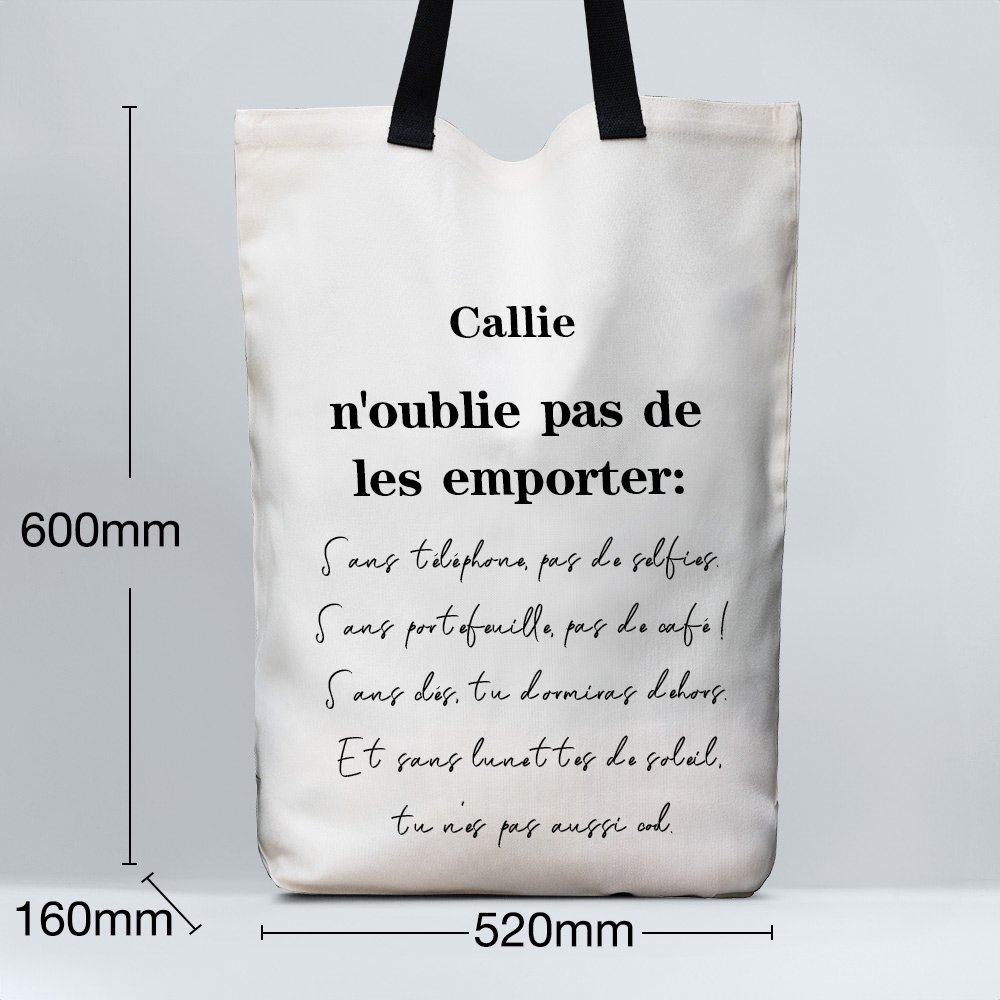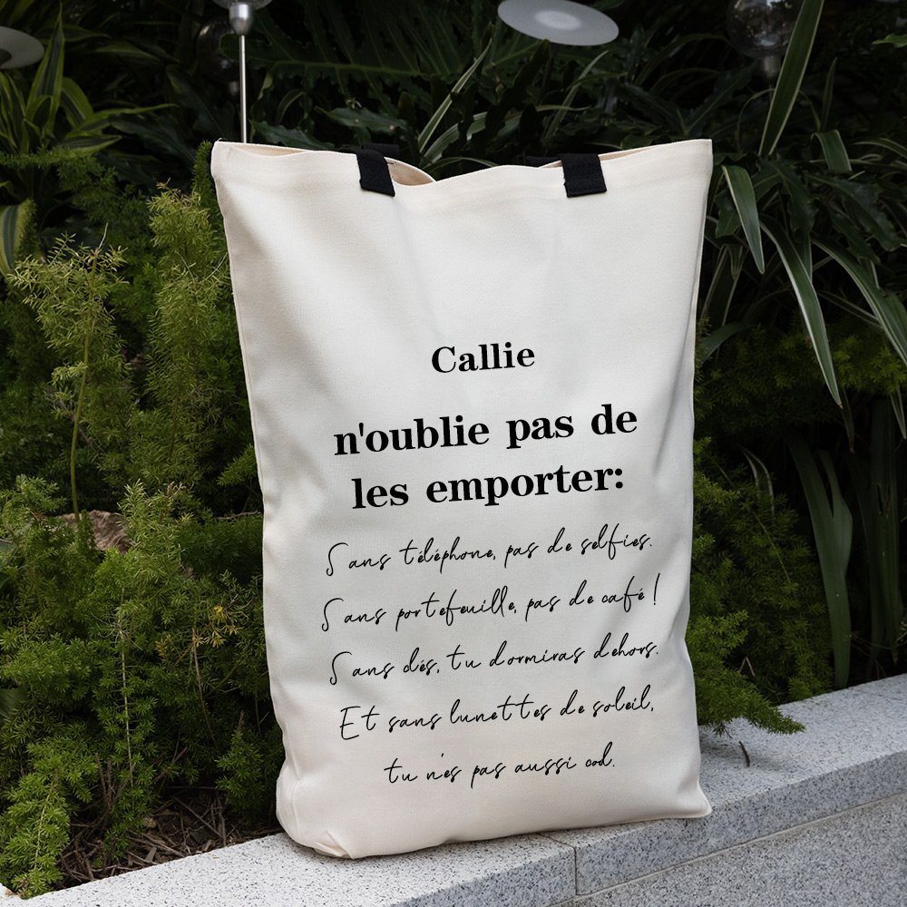 Le fourre-tout en toile présente un design unique qui allie fonctionnalité et style. Il est possible de le personnaliser en y ajoutant votre nom et un rappel personnalisé, ce qui en fait un accessoire pratique et une pièce d'apparat élégante.