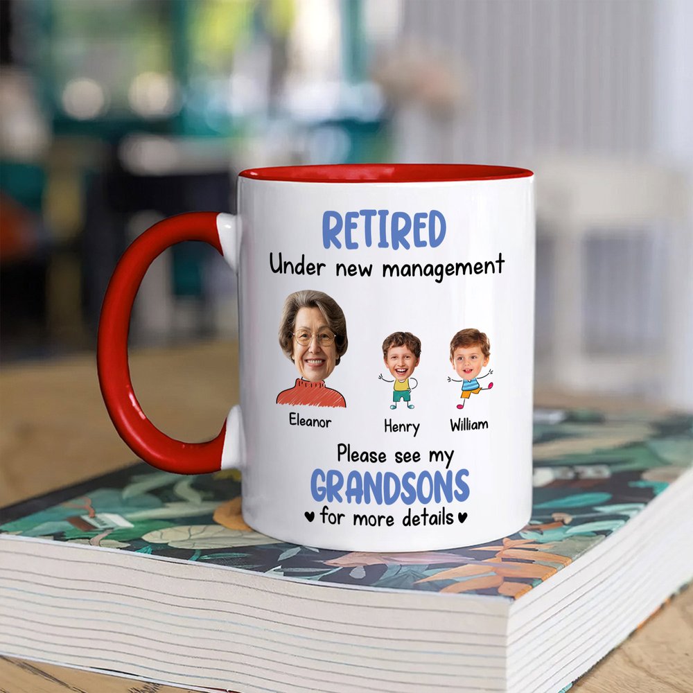 Le texte plein d'esprit "Retired Under New Management" (Retraité sous une nouvelle direction) est bien visible et reflète la joyeuse transition vers la vie de grand-parent à plein temps. Ce message enjoué célèbre le nouveau chapitre de la vie de retraité. La combinaison du texte et de la photo crée un mélange parfait d'humour et de sentiment. Il capture parfaitement l'essence de la plus douce récompense de la retraite.