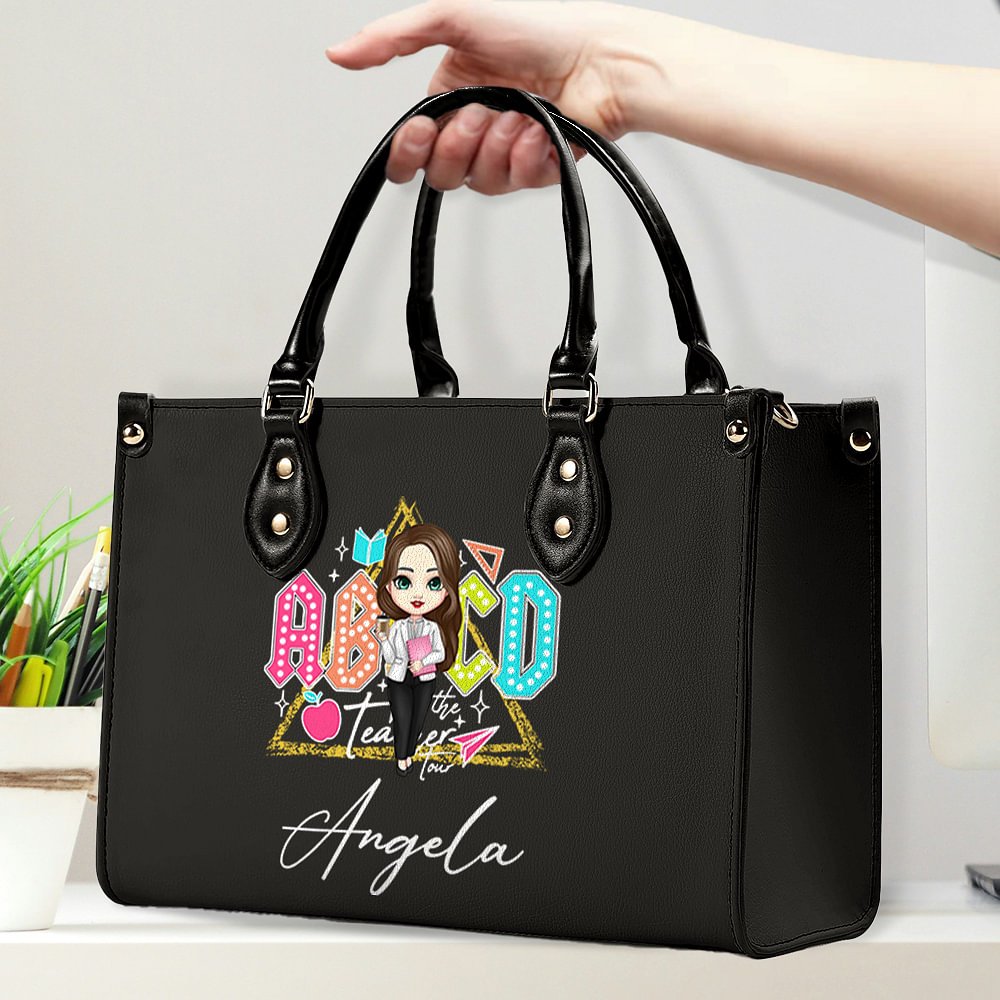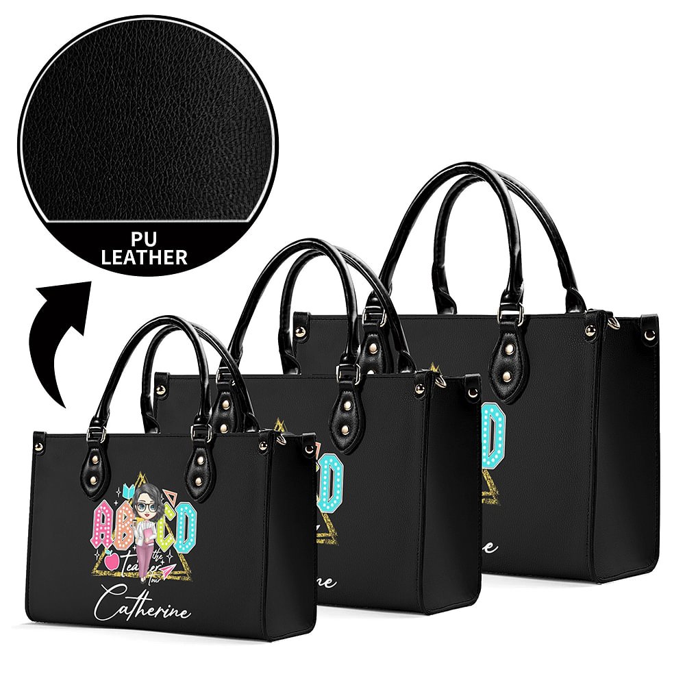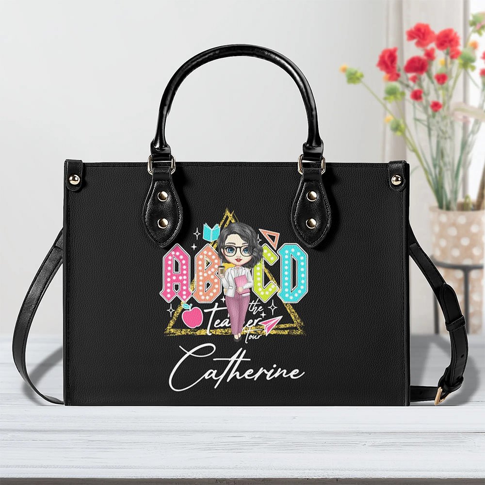 La caractéristique principale de ce sac fourre-tout est le graphique ABCD audacieux et vibrant qui orne le panneau avant. Personnalisé avec le nom de votre professeur préféré, ce design ludique est un clin d'œil à leur impact transformateur sur la vie de leurs élèves. La combinaison de la typographie rétro-chic et du charmant personnage de bande dessinée ajoute une touche de joie et de légèreté.
