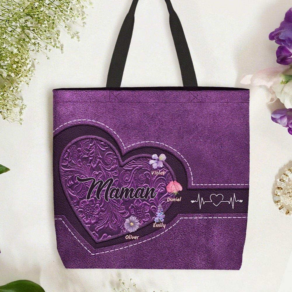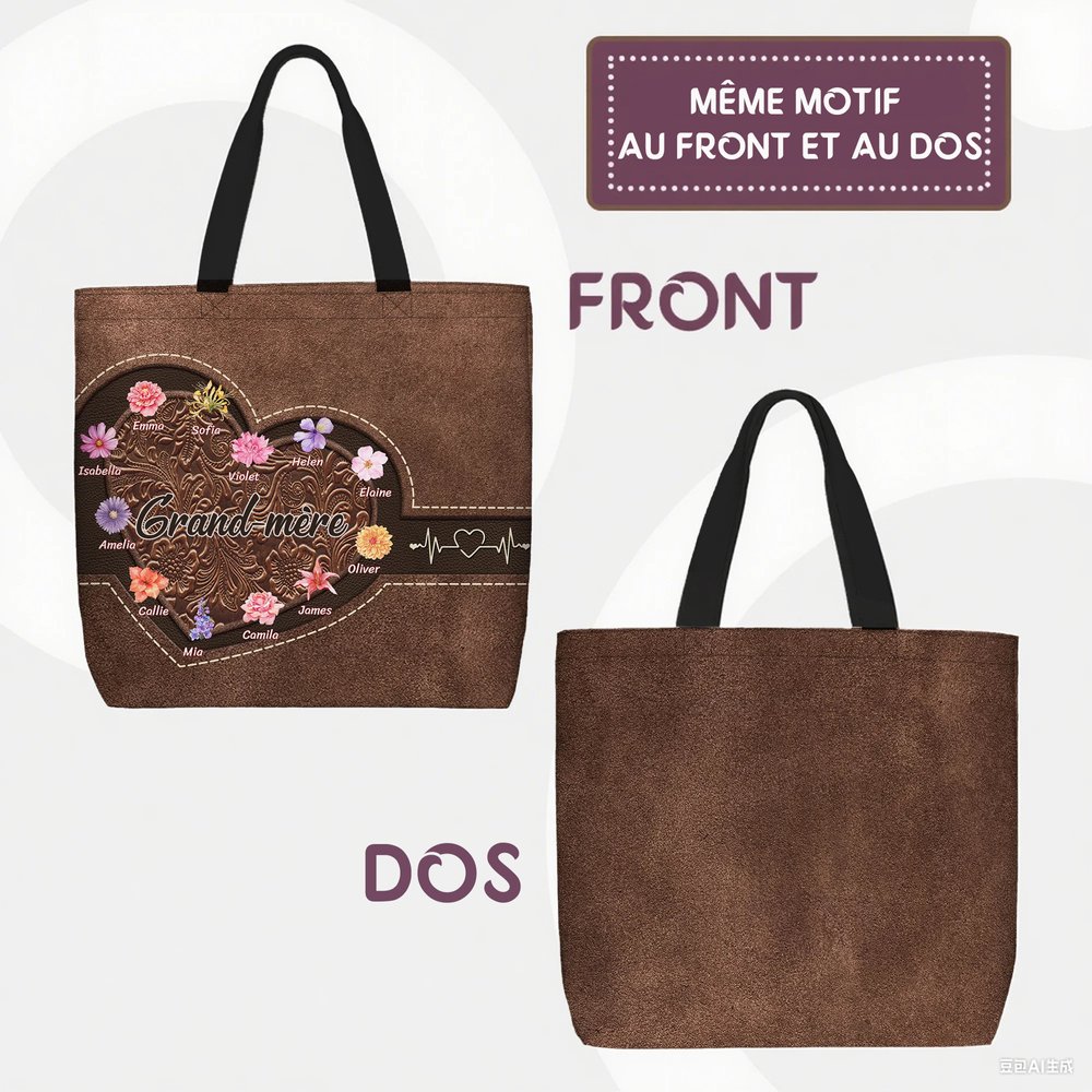 Sac Fourre-tout Imperméable Personnalisé avec 1-12 Noms Fleurs et Titre Cadeau Anniversaire Fête des Mères pour Femme Maman Grand-mère