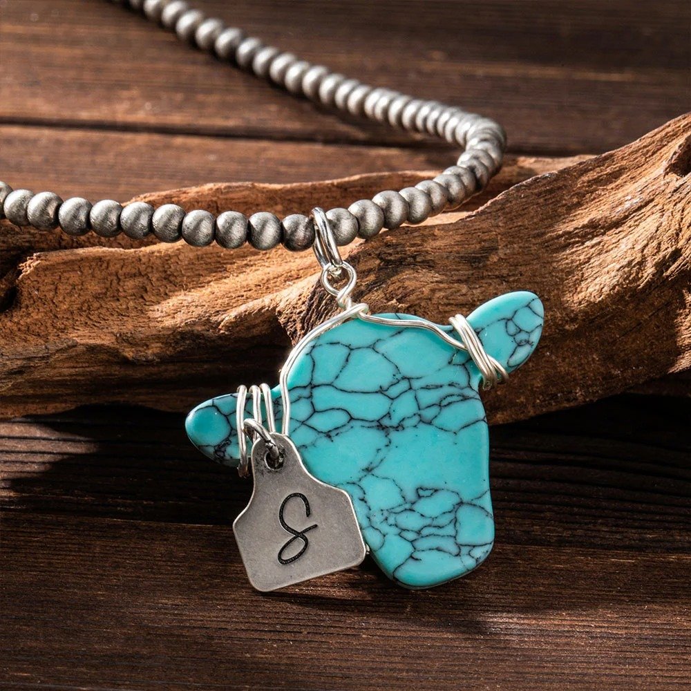 Ce collier est inspiré du style Navajo vintage. La tête de vache a une texture de pierre unique. Il est unique et idéal pour ceux qui aiment l'élément vache.