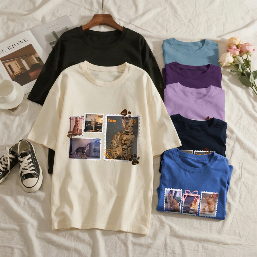 Ces T-shirts et sweatshirts d'inspiration vintage présentent des motifs de timbres. Vous pouvez télécharger des photos et créer des impressions uniques des moments adorables ou drôles de votre animal. Vous pouvez également ajouter le nom de votre animal, l'année, le jour et le mois de sa naissance pour créer une impression unique. Ces articles pratiques sont un moyen parfait d'honorer les membres de votre famille à fourrure en associant le charme vintage à l'amour des animaux de compagnie.