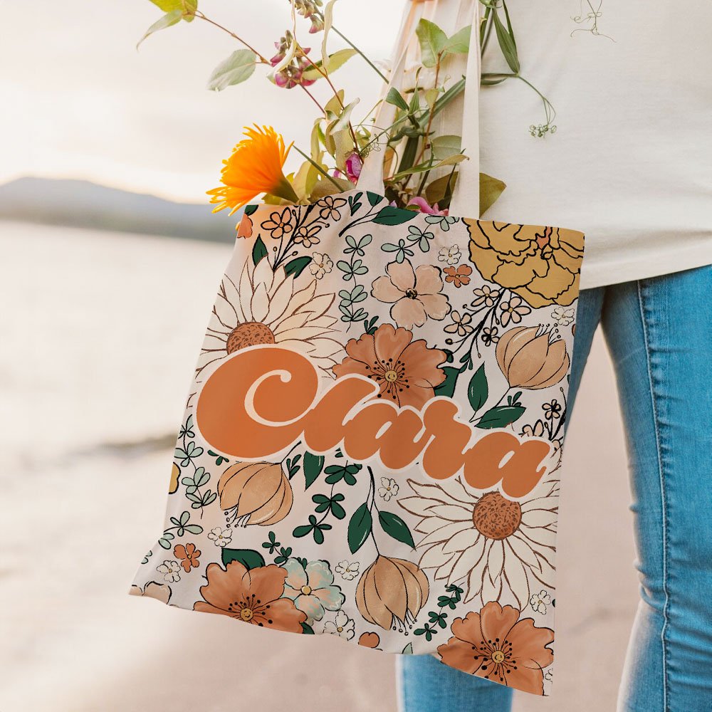 Ce sac en toile vibrante présente un charmant motif floral vintage et peut être personnalisé avec votre nom. Accessoire élégant et unique, il reflète sans effort votre personnalité tout en ajoutant une touche de fun à chacune de vos sorties.