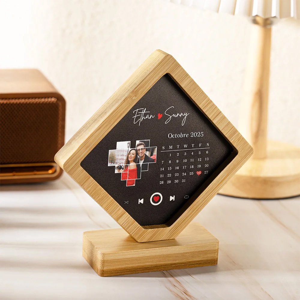 Ce cadre photo se distingue par son design unique en forme de diamant et son ton de bois original. Sa forme géométrique se combine parfaitement avec un style minimaliste moderne, qui est à la fois à la mode et artistique. Vous pouvez également personnaliser le nom et le texte et télécharger des photos selon vos préférences. Qu'il s'agisse d'une photo de famille, d'une photo de couple ou d'une photo commémorative, elle peut être parfaitement mise en valeur grâce à ce cadre photo.