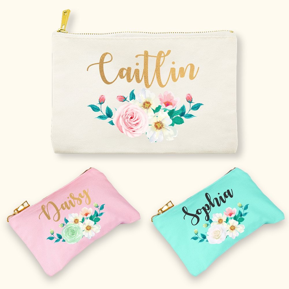 Ce sac de maquillage personnalisé disponible en blanc, rose et vert est simple et individuel, la couleur simple convient à tout style de vêtements. Les différentes couleurs de roses ont des significations différentes, notre sac à cosmétiques peut non seulement personnaliser la couleur de la rose mais aussi le nom, veuillez personnaliser ce sac à cosmétiques avec votre rose préférée !