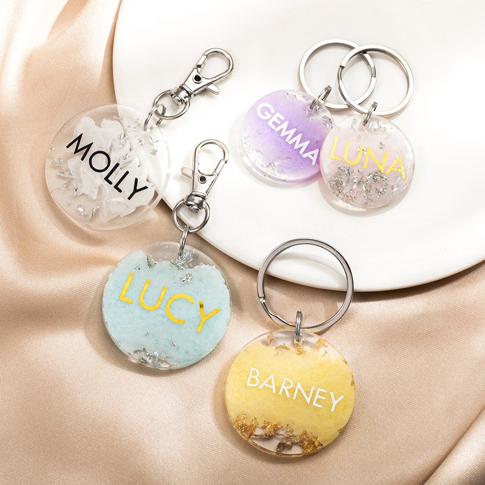 Ce porte-clés est conçu pour les amoureux des animaux de compagnie qui veulent garder leurs amis à fourrure près d'eux. Le porte-clés rond est personnalisé avec le nom de votre animal, ce qui garantit sa sécurité et votre tranquillité d'esprit. Son design accrocheur ajoutera certainement une touche de charme à la décoration de votre animal.