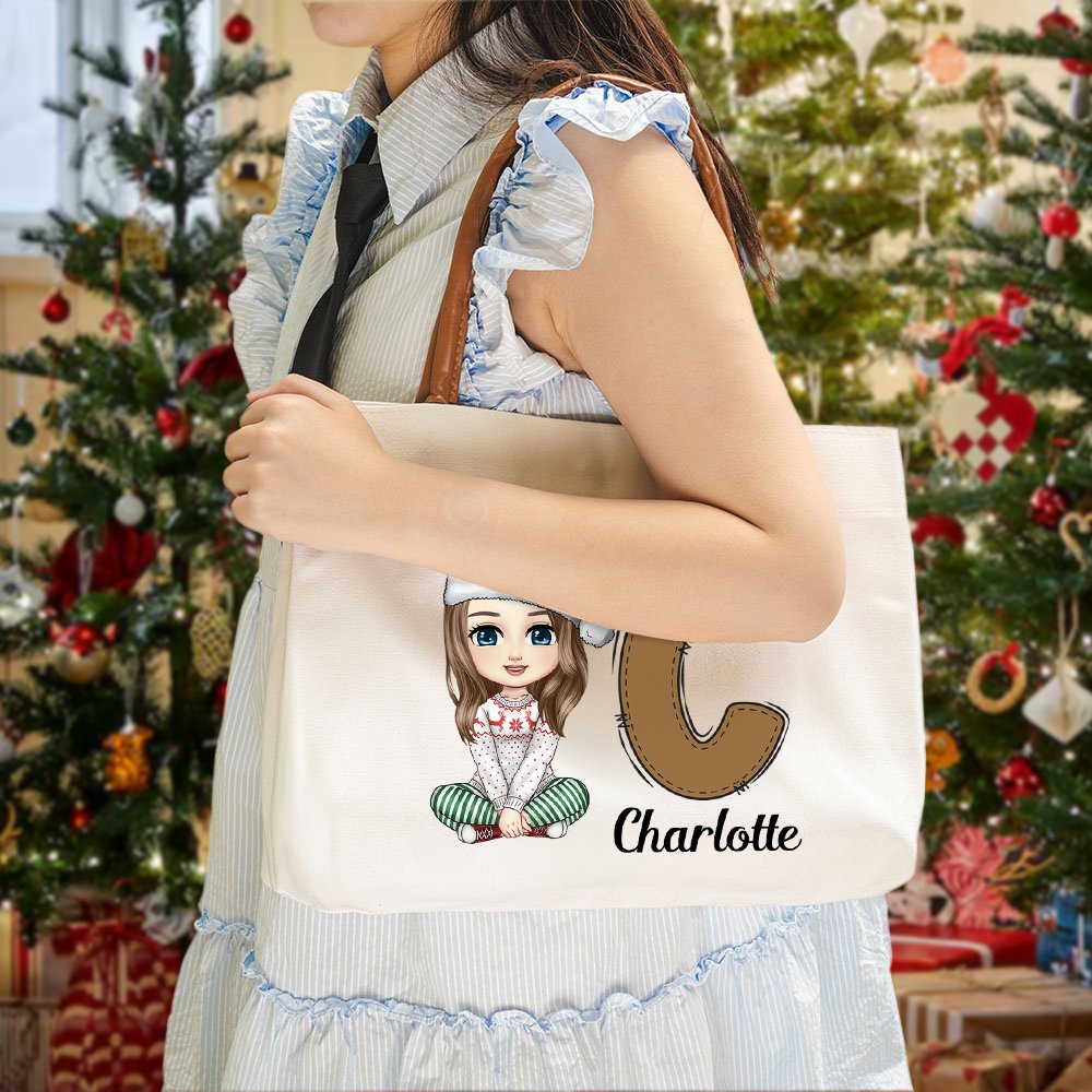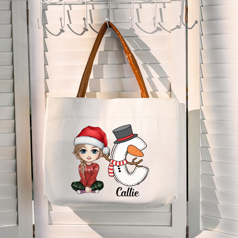 Ce sac fourre-tout présente des personnages mignons et des initiales vibrantes d'éléments de Noël. Personnalisez-le avec des images de dessins animés et des noms pour un style unique. Son esthétique ludique et festive capture parfaitement l'esprit de Noël et constitue un moyen charmant et unique d'aller partout.