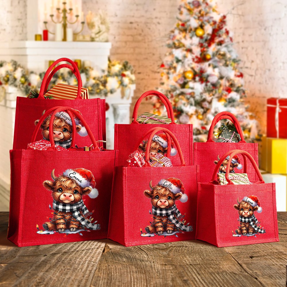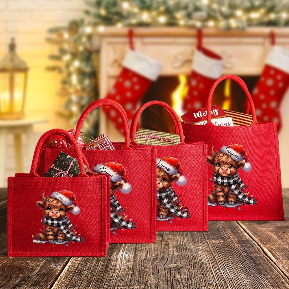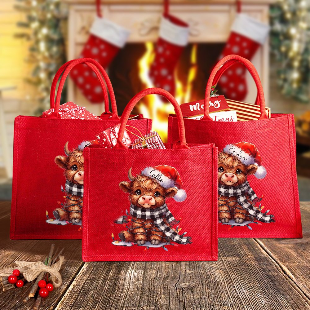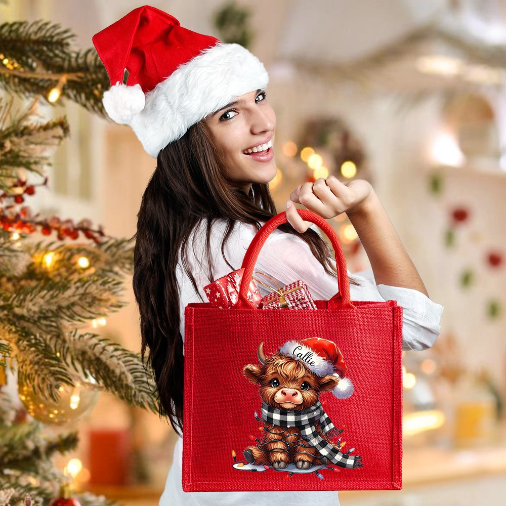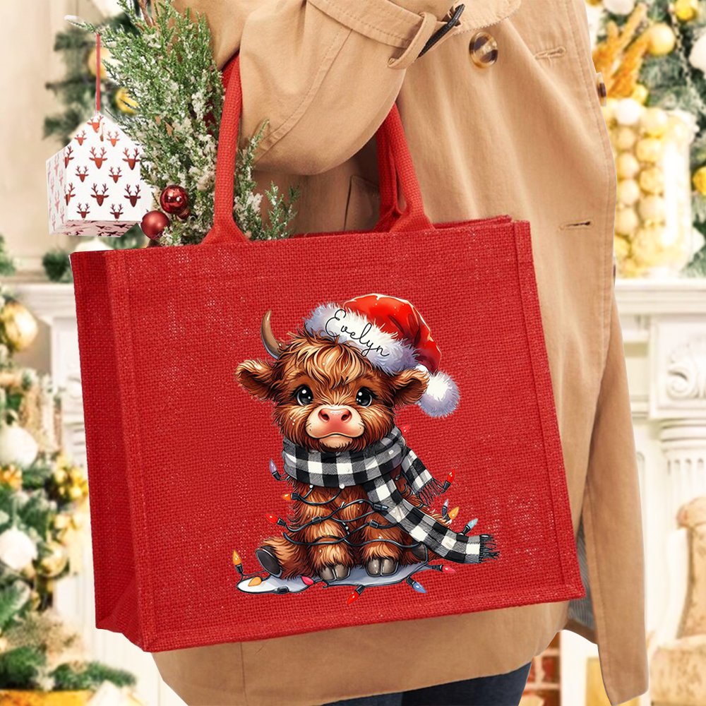 Ce sac est imprimé d'une adorable vache des Highlands portant un chapeau de Noël et une bougie attachée à elle. Les éléments festifs uniques sont combinés pour enflammer instantanément l'atmosphère festive. Les noms personnalisables permettent de créer un cadeau personnalisé unique. Non seulement il s'inscrit dans le thème des fêtes, mais il apporte également une atmosphère joyeuse à la maison et laisse à chacun des souvenirs inoubliables.