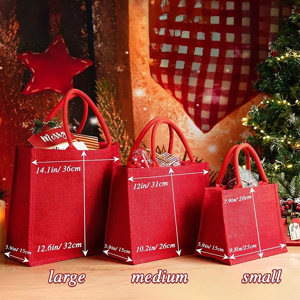 | Mesure: | Petit sac fourre-tout rouge - 25 cm × 20 cm × 15 cm (9,8" × 7,9" × 5,9") Fourre-tout rouge moyen - 12" × 10.2" × 5.9"(31cm × 26cm × 15cm) Grand sac fourre-tout rouge - 14.1" × 12.6" × 5.9"(36cm × 32cm × 15cm) Petit sac en jute - 10.2" × 10.2" × 6.7"(26cm × 26cm × 17cm) Grand sac en jute - 13.7" × 11.8" × 7.9"(35cm × 30cm × 20cm) |