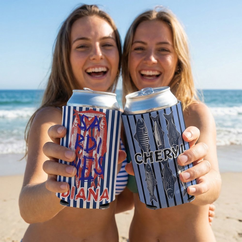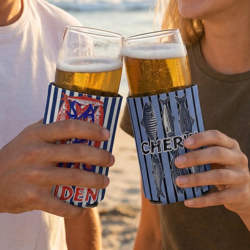 Les sardines, les maquereaux et les flets sont des éléments créatifs, associés à un nom personnalisable. Les dessins vivants et intéressants sont distinctifs et facilement reconnaissables, et répondent parfaitement aux préférences des amateurs de pêche, faisant du manchon de la tasse un souvenir unique et personnalisé.
