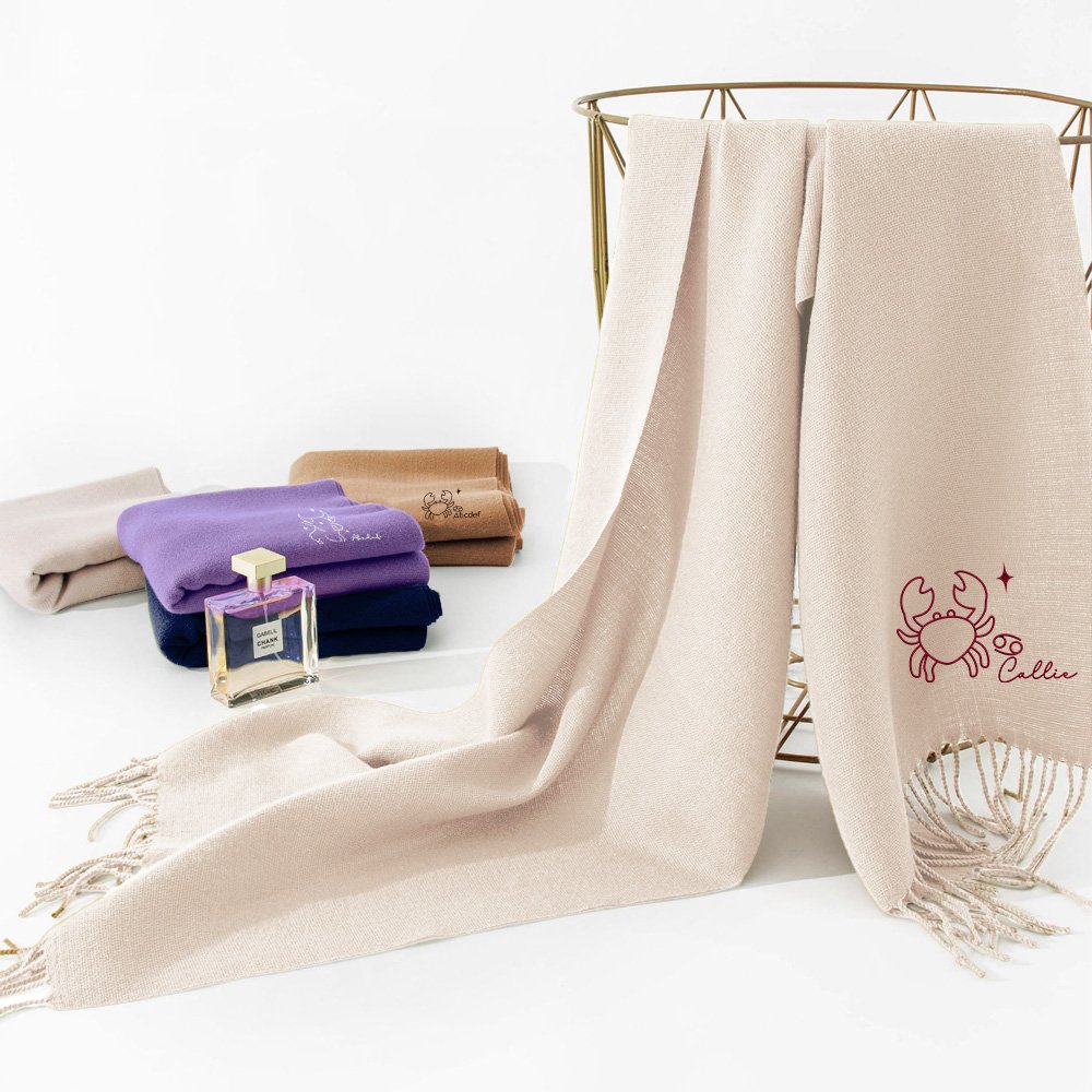 Écharpe Personnalisée avec Nom et Signe Astrologique Brodés à la Main Essentiel d'Hiver Douce Cadeau Noël Anniversaire pour Femme Homme Famille