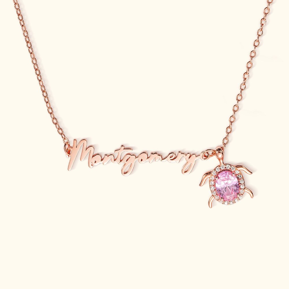 Vous êtes à la recherche d'un cadeau unique ? Ce charmant collier avec une tortue comme pierre de naissance ne manquera pas de vous séduire. Le pendentif est une image très mignonne d'une tortue. La pierre de naissance est sertie au milieu de la tortue et est entourée d'un cercle de pierres fines.