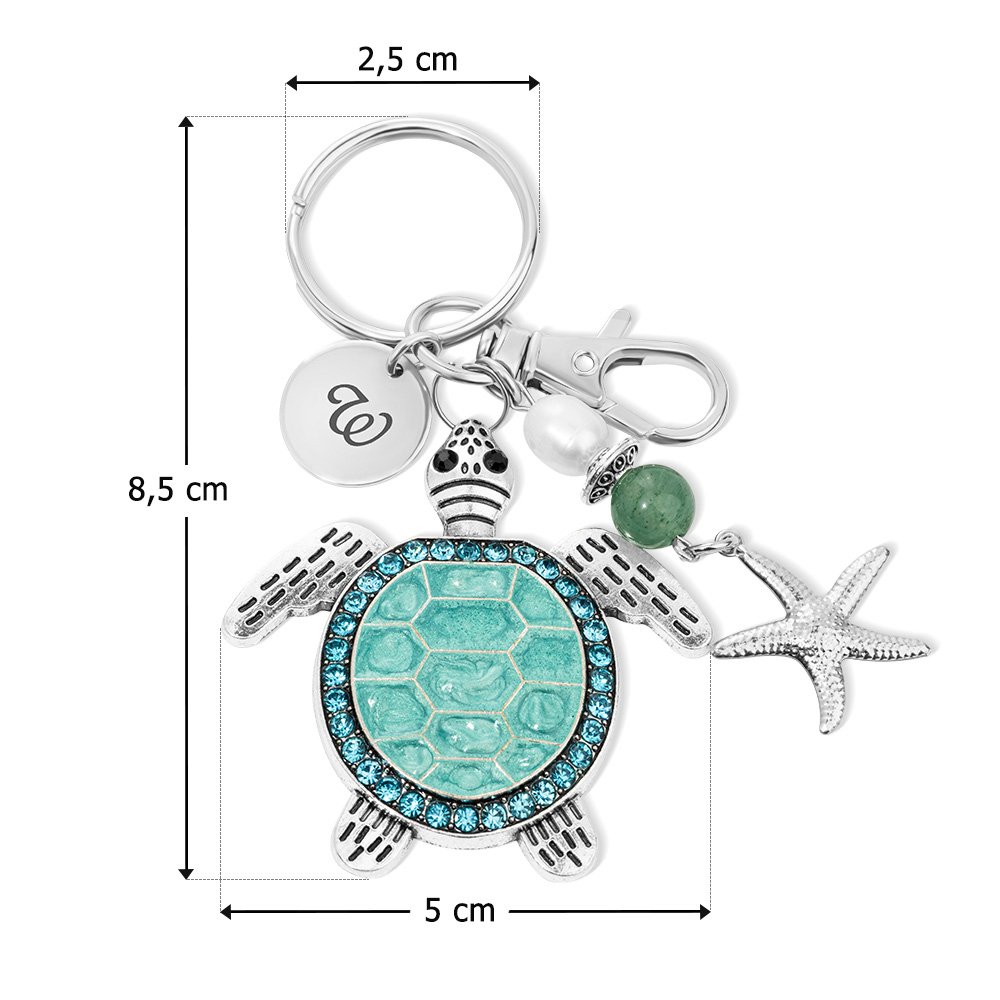 Si vous recherchez l'équilibre dans votre vie, le cristal de jaspe vert apaisant est considéré par beaucoup comme possédant ce pouvoir. Il favorise également la positivité et l'harmonie et cherche à rétablir tout déséquilibre. Nos porte-clés s'inspirent de ce motif et intègrent des thèmes marins, en ajoutant des éléments tels que des tortues, des étoiles de mer, des perles, etc. pour exprimer le lien indissociable entre les humains, l'océan et la nature.