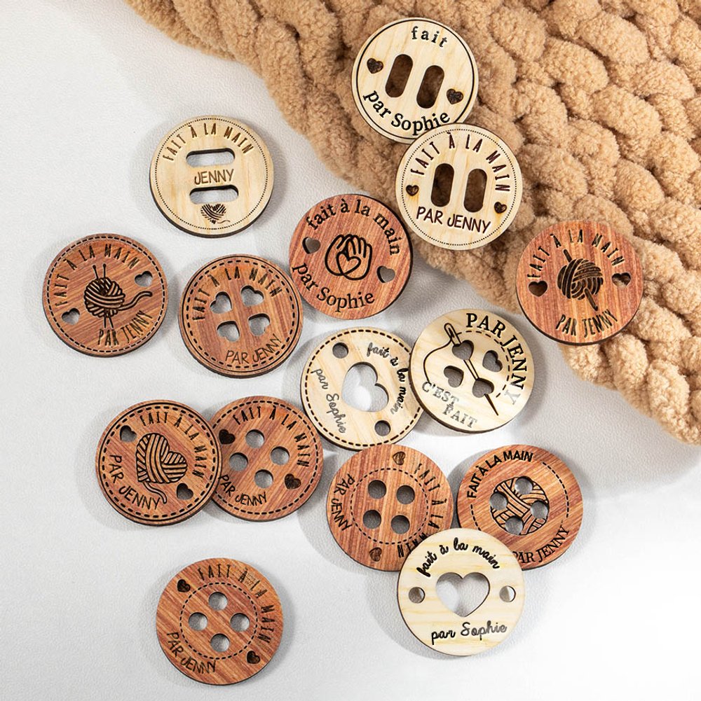 Nos boutons délicates offrent 5 types de styles pour votre choix, vous pouvez écrire le nom que vous voulez personnaliser sur l'étiquette, ce qui rend chacun de vos vêtements ou produits tricotés plus distinctifs et significatifs !