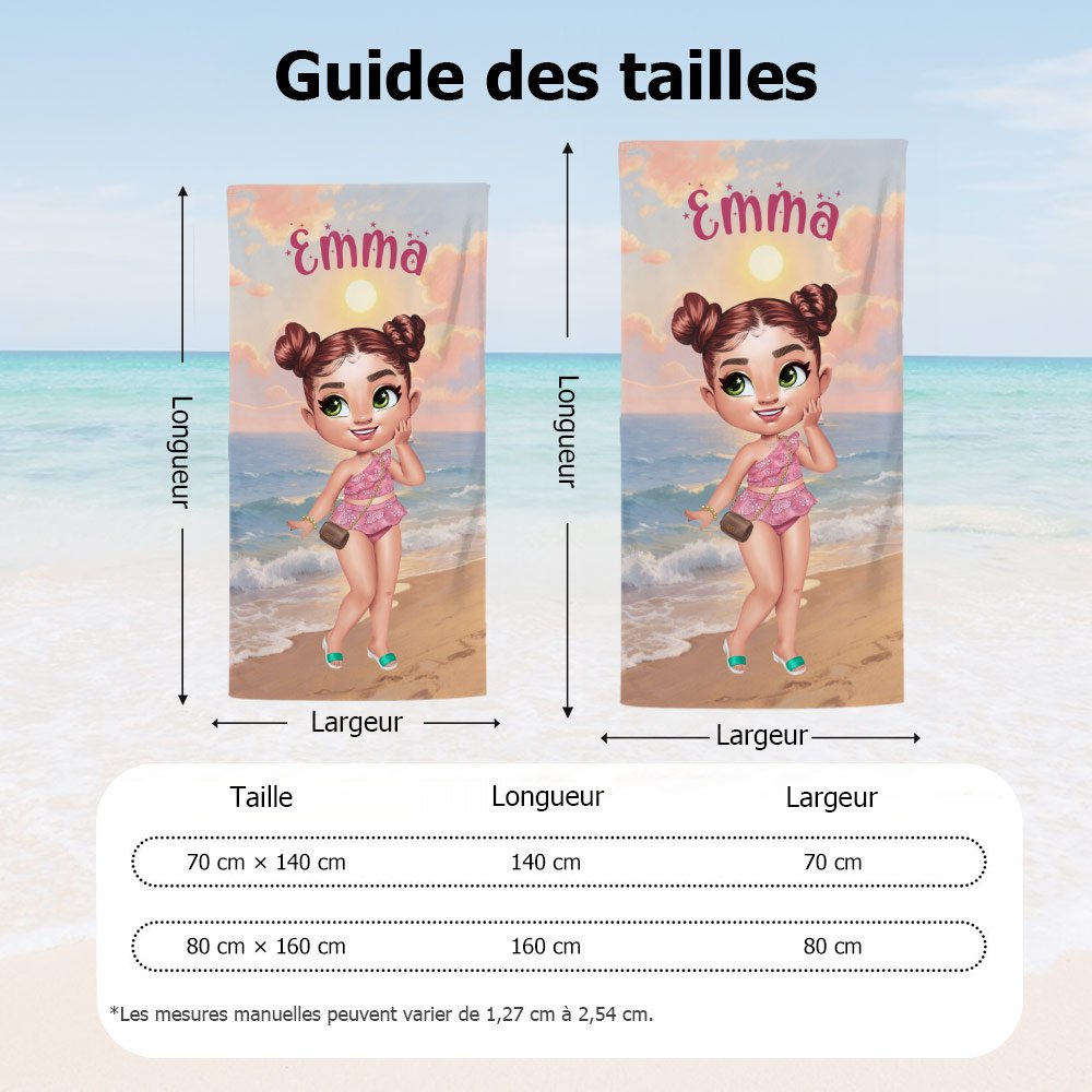 Cette serviette de plage a pour fond une étoile scintillante en dégradé, qui peut être personnalisée avec une image de fille mignonne et intelligente, créant un effet visuel plein de vitalité juvénile. Vous pouvez également personnaliser votre nom afin que chaque serviette devienne votre objet exclusif.