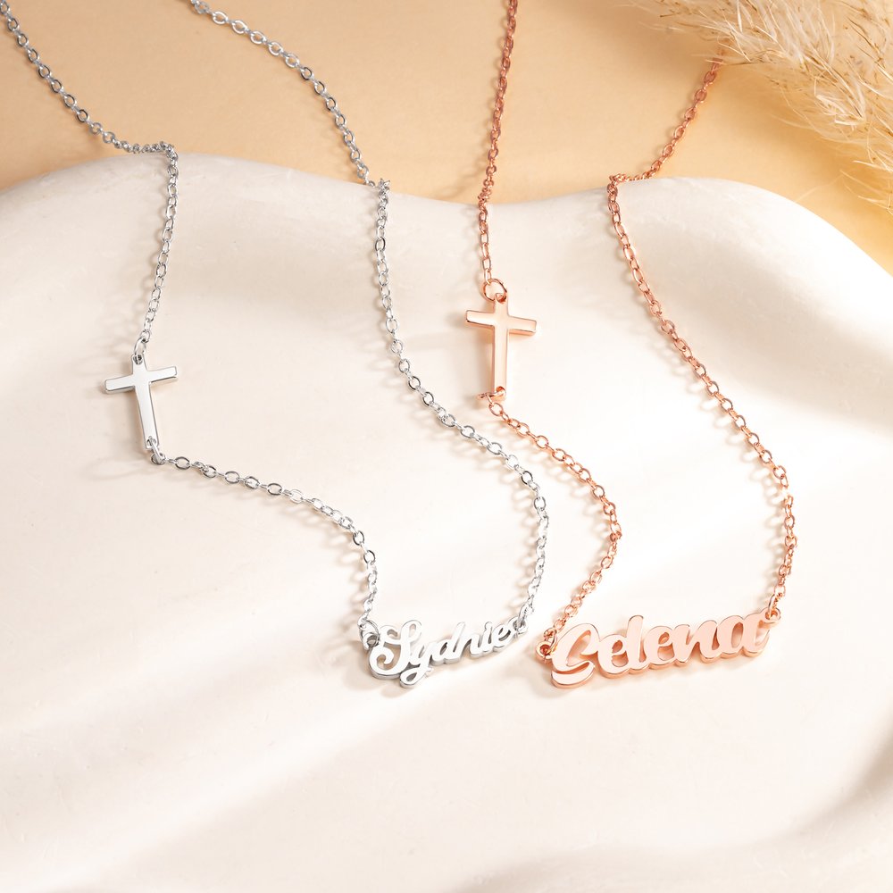 Méticuleusement fabriqué en argent sterling ou en laiton de première qualité, chaque détail reflète une excellence durable. La coupe de précision et les finitions polies lumineuses garantissent que la croix et les noms personnalisés conservent leur éclat radieux.