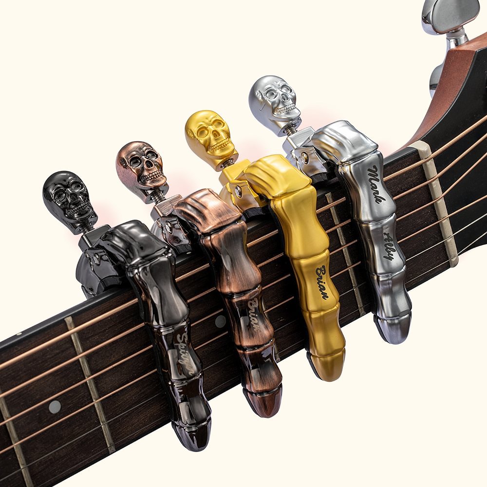 Le design en forme de tête de mort de nos capos est à la fois unique et élégant, ce qui les fait sortir du lot. Les courbes douces et les lignes épurées confèrent une touche de modernité à ce design classique, tandis que les couleurs vives garantissent que vous serez toujours remarqué. Que vous vous produisiez sur scène ou que vous jouiez avec vos amis, ces capos vous permettront d'être au top de votre forme et de votre son.