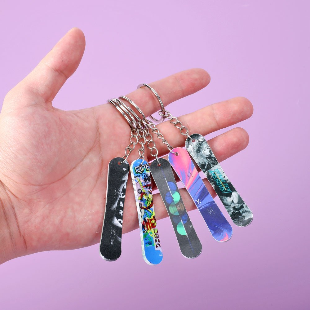 Notre porte-clés est conçu en forme de snowboard. Vous pouvez télécharger une photo de votre snowboard pour personnaliser votre porte-clés afin de capturer l'excitation des sports d'hiver et d'en faire un souvenir personnel qui montre votre amour de l'aventure.