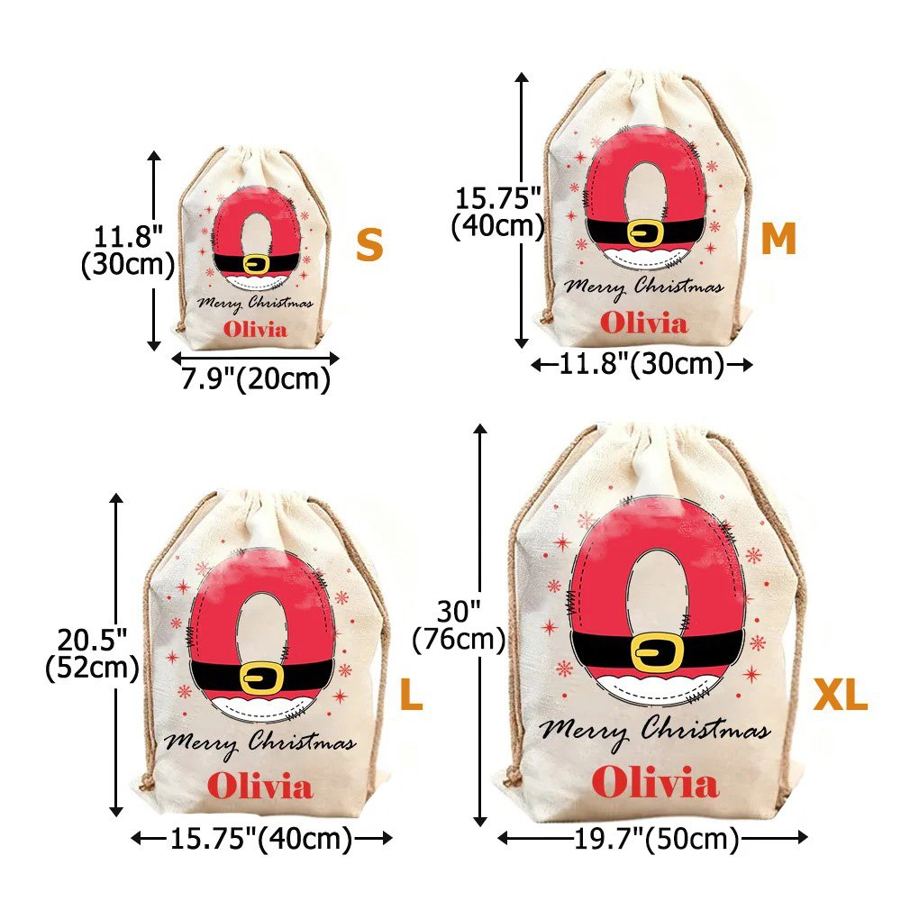 Inspiré par l'image classique du Père Noël, ce sac mêle astucieusement des initiales à des éléments de la tenue classique du Père Noël. Le sac est orné de motifs de flocons de neige et d'étoiles et présente une combinaison de couleurs rouge et blanche, créant une atmosphère vivante et festive. Des noms personnalisables sont disponibles, ce qui rend chaque sac unique.