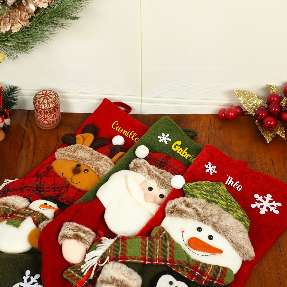 Bas de Noël Personnalisé avec Nom et Design de Bonhomme de Neige Père Noël ou Renne Cadeau de Fêtes de Fin d'Année pour Famille Enfants